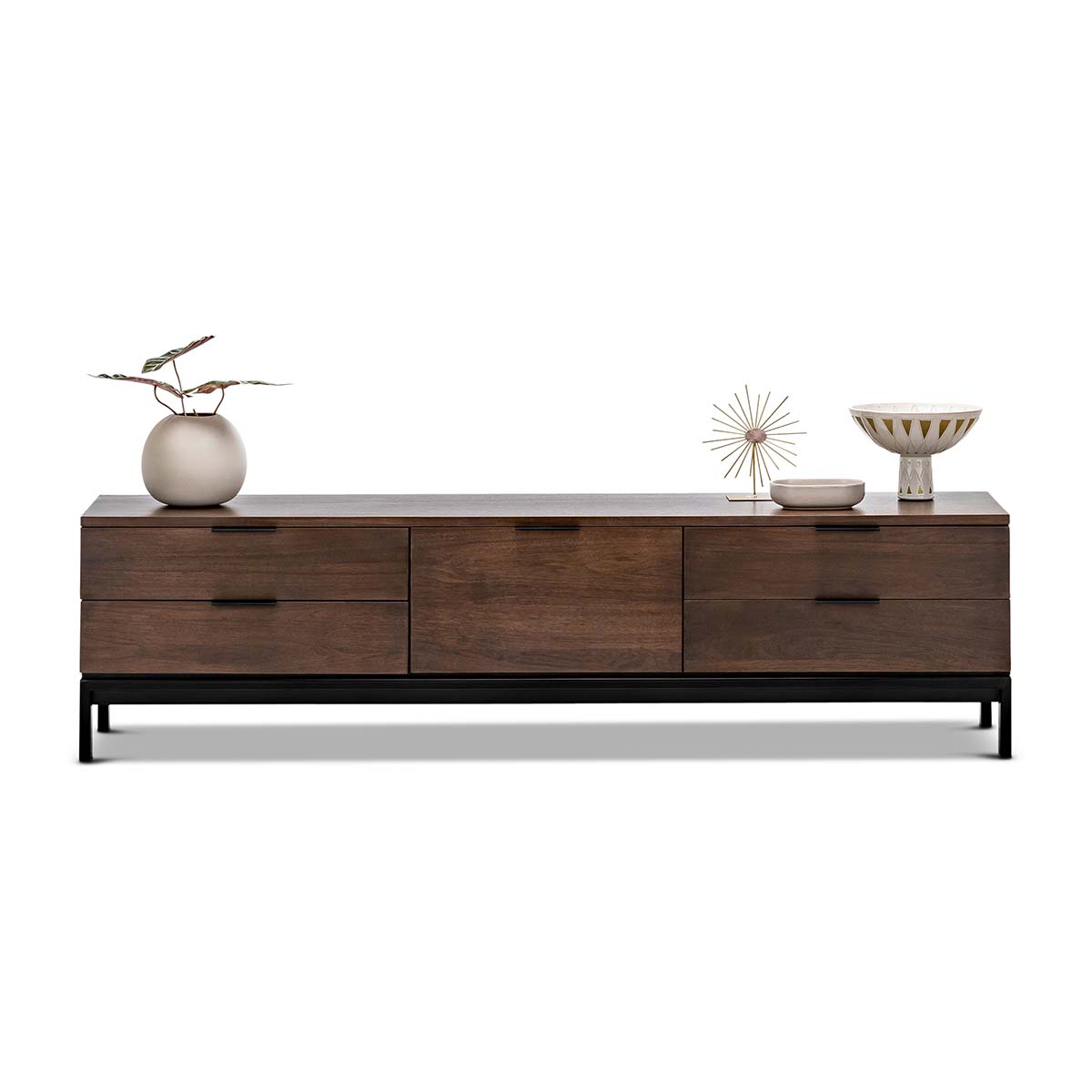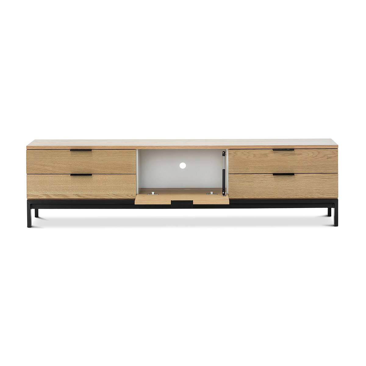 The Reese collection by Eastern Warehouse is simple and full of considered design elements, offering a great range of pieces for your contemporary home. This entertainment unit maximises both storage and style, with its black steel base and detailing making for a striking contrast to its American oak veener body.