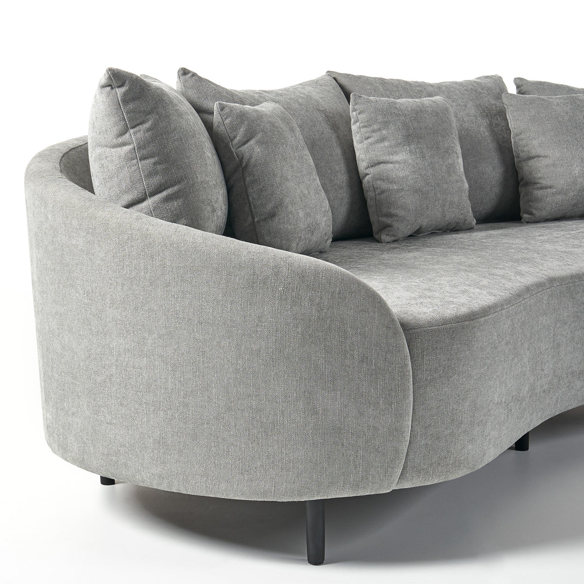 With a slim, low profile design, the Freya Loft Sofa is the perfect statement sofa chair for any front living space. The elegant, curved design and rounded edges give this sofa an air of modern elegance, whilst the luxe cushioning provides extra comfort. Its soft fabric upholstery is beautifully paired with the black powder-coated metal legs, creating a stunning contrast of textures.