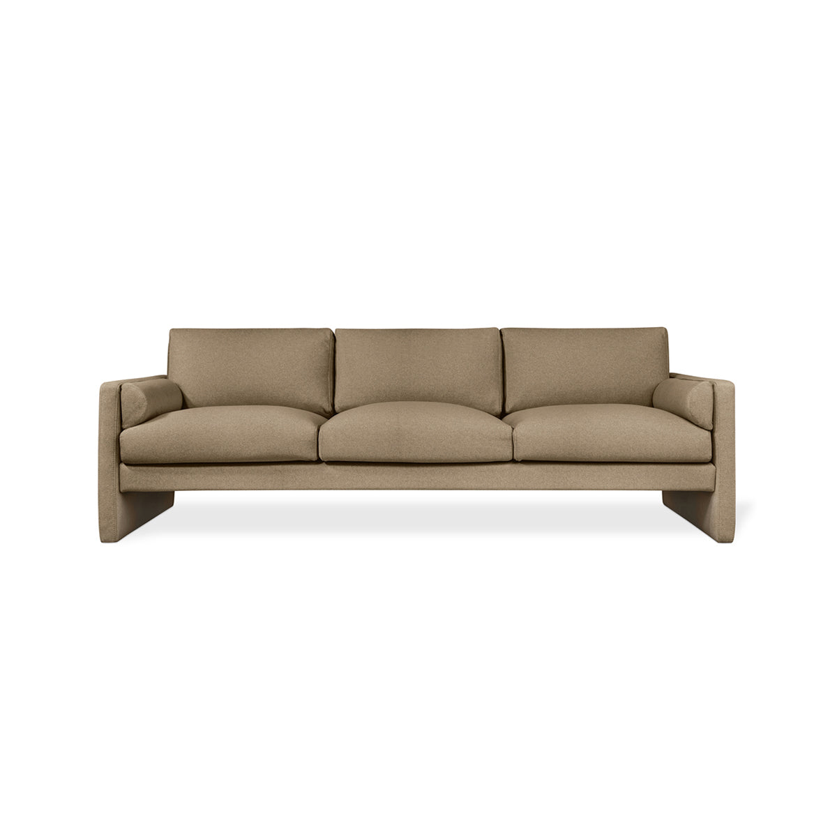 With bold right angles and arms that root to the ground, the Laurel Sofa showcases a satisfying silhouette that creates sleek geometries to complement modern living spaces. The extra-long suspended frame floats away from the floor to balance the bold form of the sofa with a light, airy quality. Combining post-modern aesthetics with Nordic design, this sofa invites you into the comfort of feather-fill cushions and integrated side bolsters for luxurious lounging.