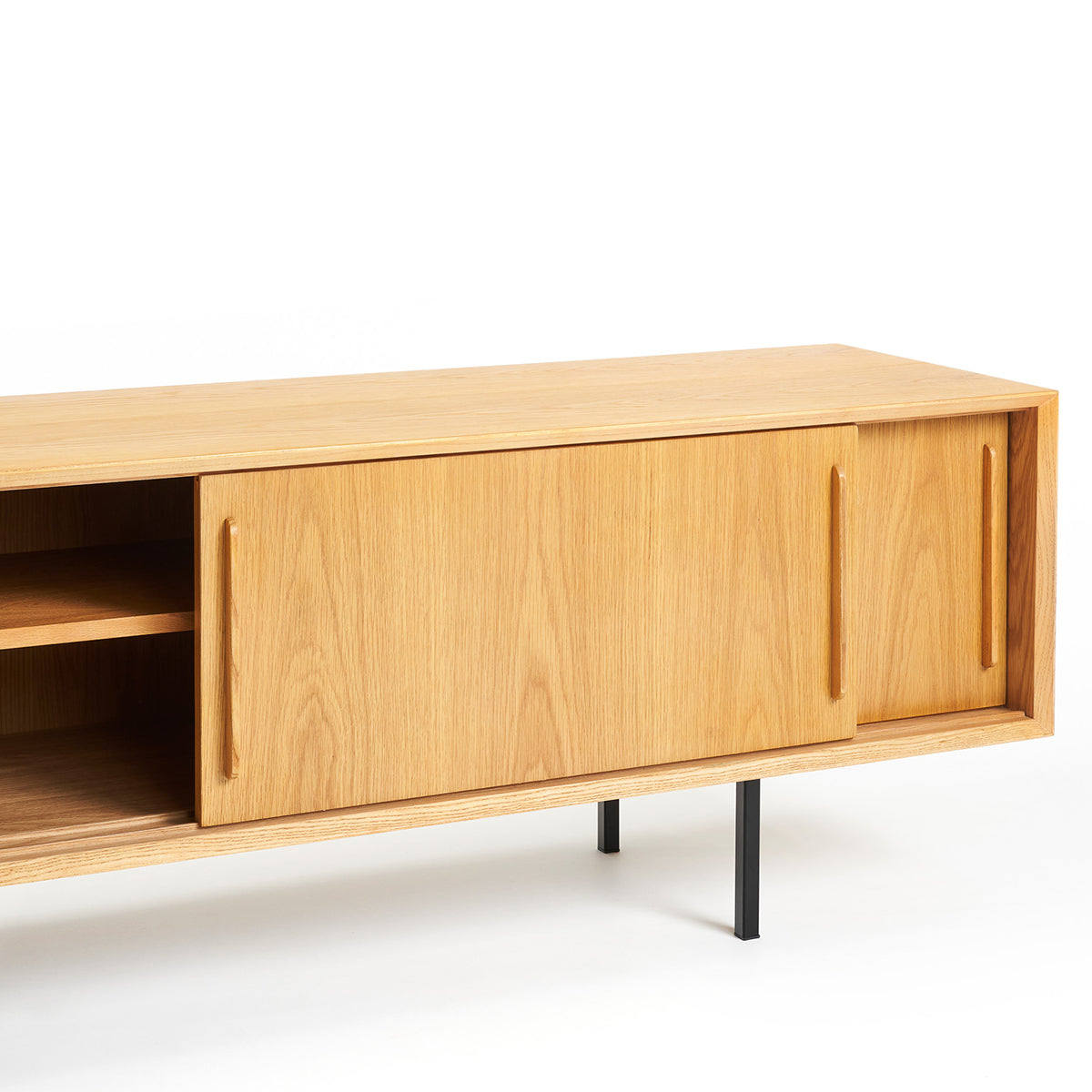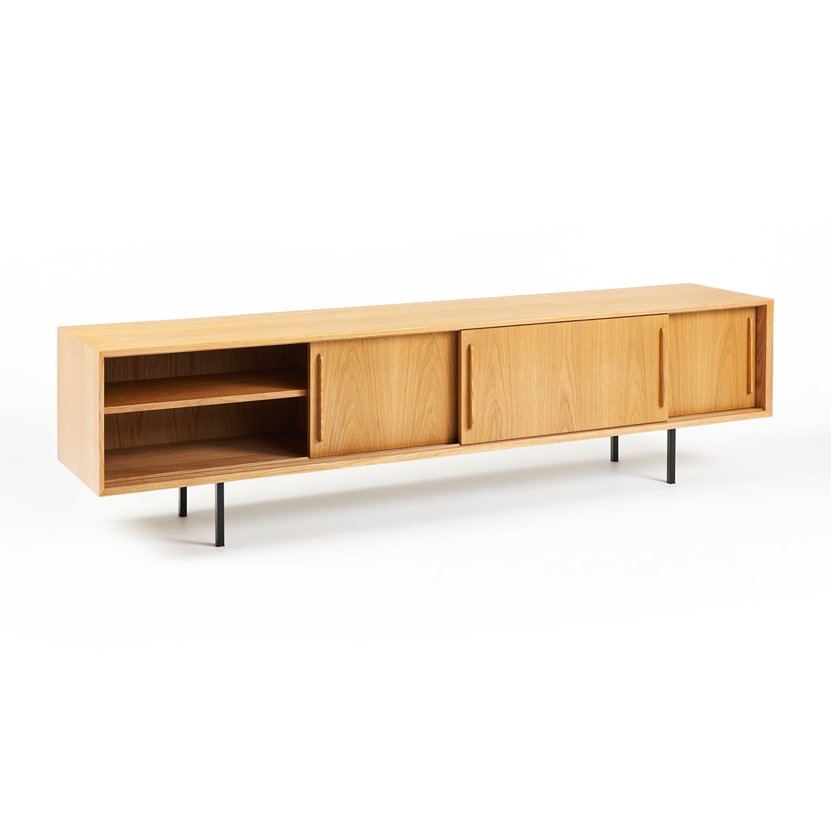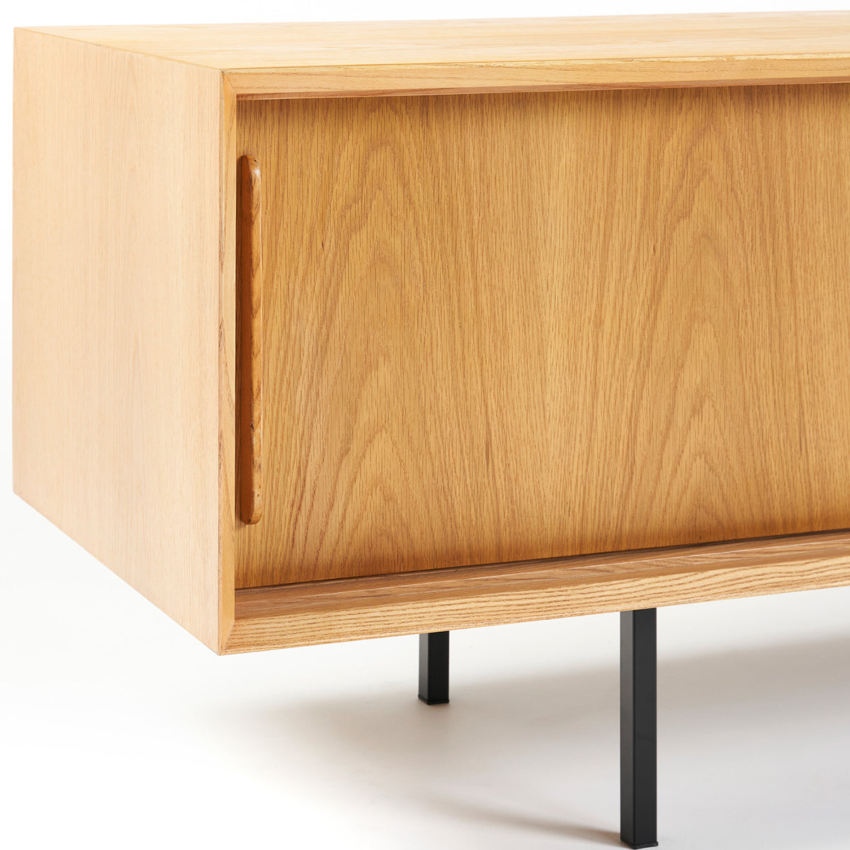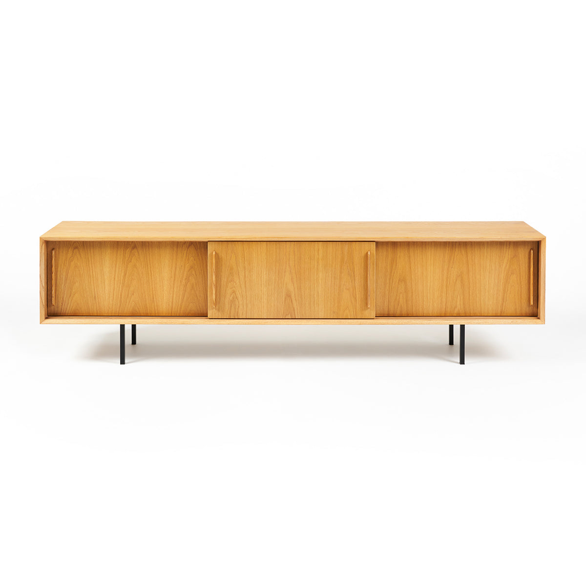 The Slater Buffet unit oozes simple Australian style. This oak buffet is the perfect storage piece for any home with its natiral oak colouring, contemporary design, and sleek black legs.