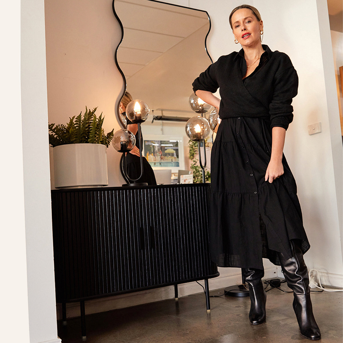 Add character and interest to your space with the playful Artemis collection. Featuring a slim frame with a distinctive curved pattern, Artemis is a quirky statement piece for hallways, bedrooms and living rooms.