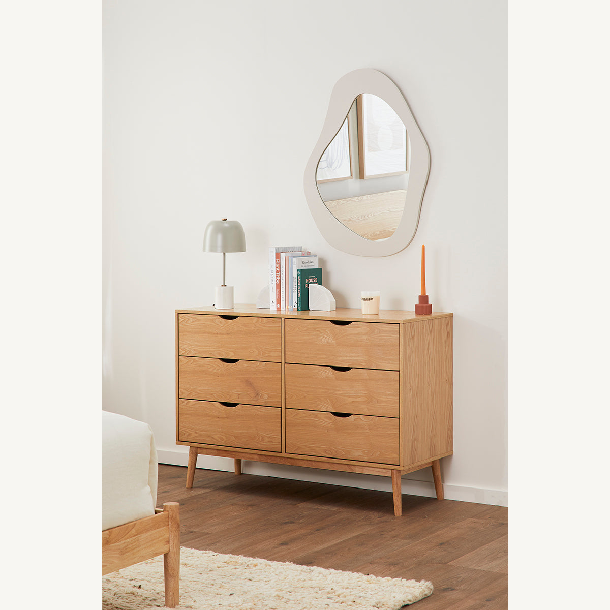 Add character and interest to your space with the unique Aura collection. Featuring a bold frame with distinctive organic contours, Aura is the perfect modern statement piece for hallways, bedrooms and living rooms.