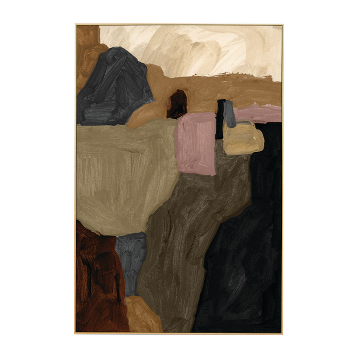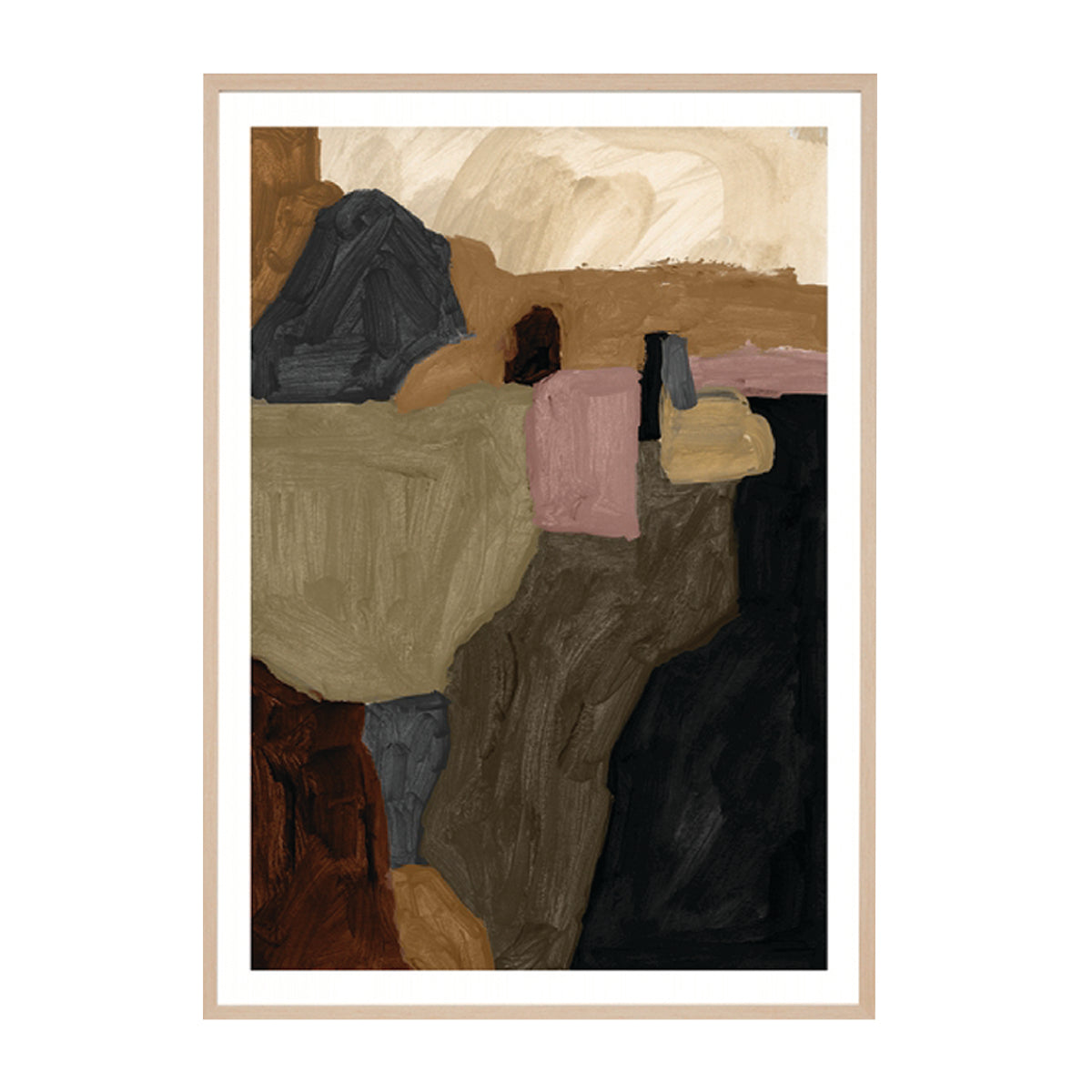 Layered and expressive, Maeve Earth 1 Art Print captures the quiet strength of the natural landscape through a palette of warm earth tones and muted neutrals. Textural brushstrokes in clay, ochre, and charcoal create a sense of grounded movement, balanced by soft blush and sand hues. The result is a refined abstract piece that evokes both depth and calm.