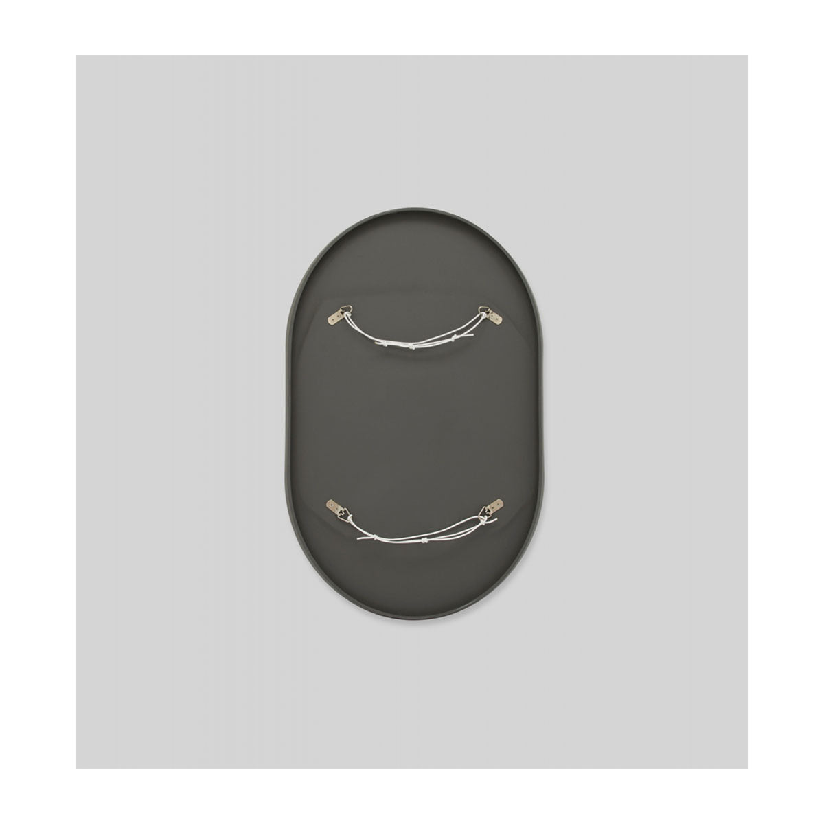 The Mira series explores shapes and colours, juxtaposing elements to create new interpretations of classic mirror shapes. This modern statement piece features a combination of grey smoke tinted and regular mirror panels, set off by an angled frame in a soft painted matte finish.