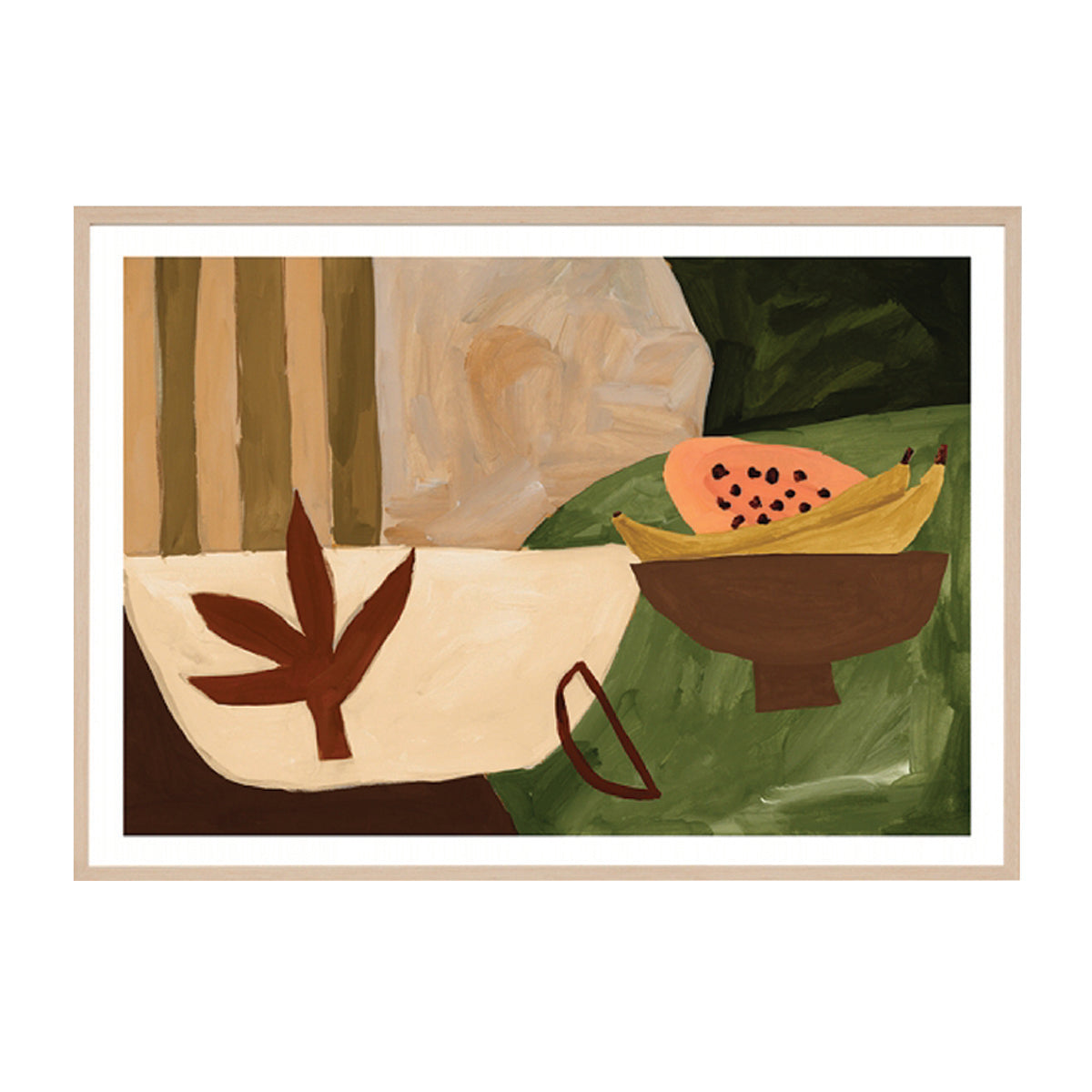 Rich in texture and tone, the Tropical Geometry Earth Art Print blends organic forms with abstract expression to create a contemporary tropical statement. Featuring warm earthy hues of clay, cocoa, and olive, contrasted with playful hints of papaya and banana yellow, this artwork evokes a grounded yet sunlit serenity. Its hand-painted style and geometric composition bring a sense of balance and artistic flair to any space.