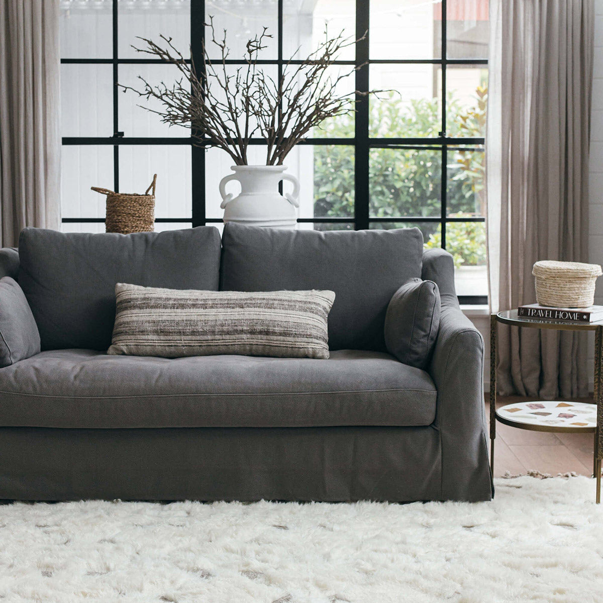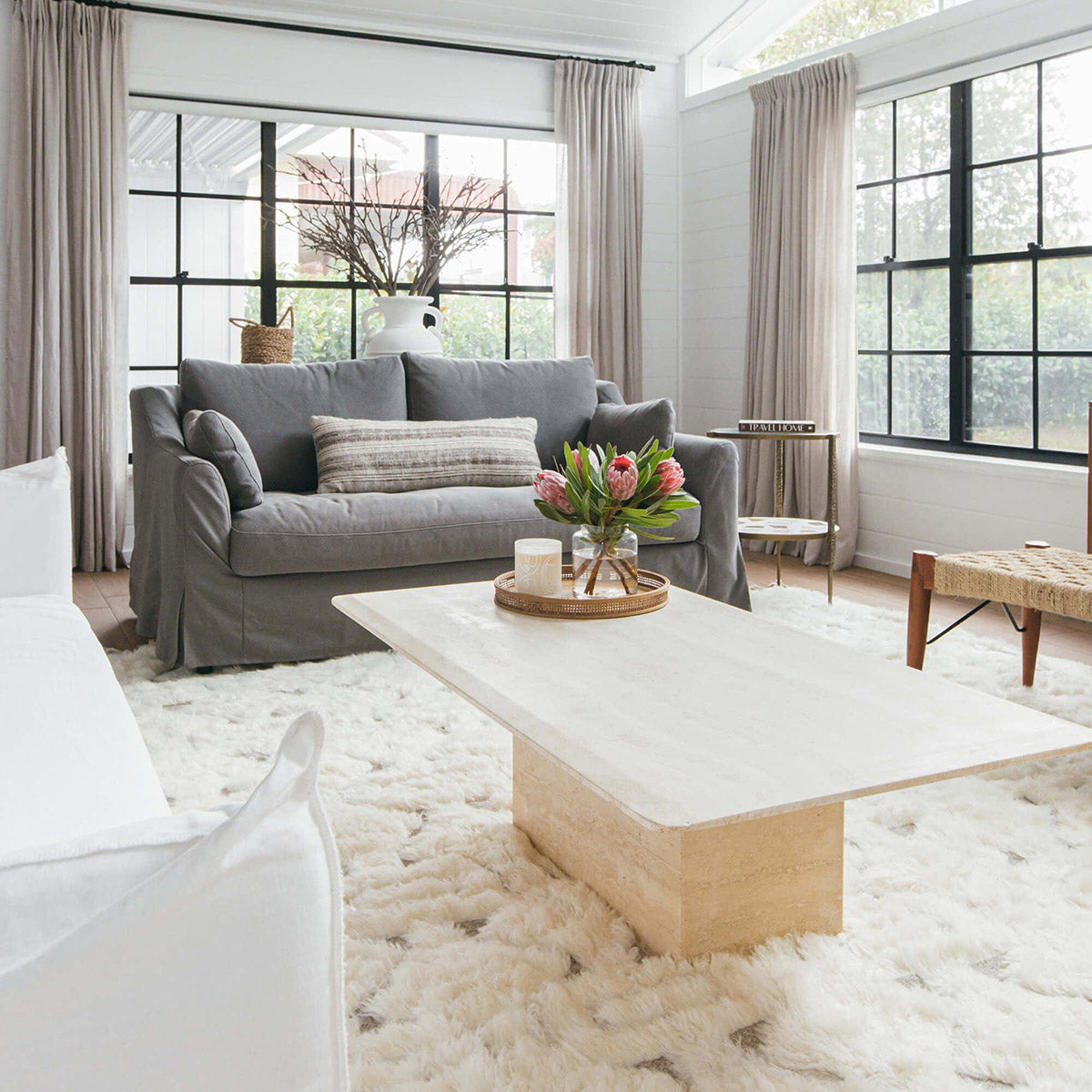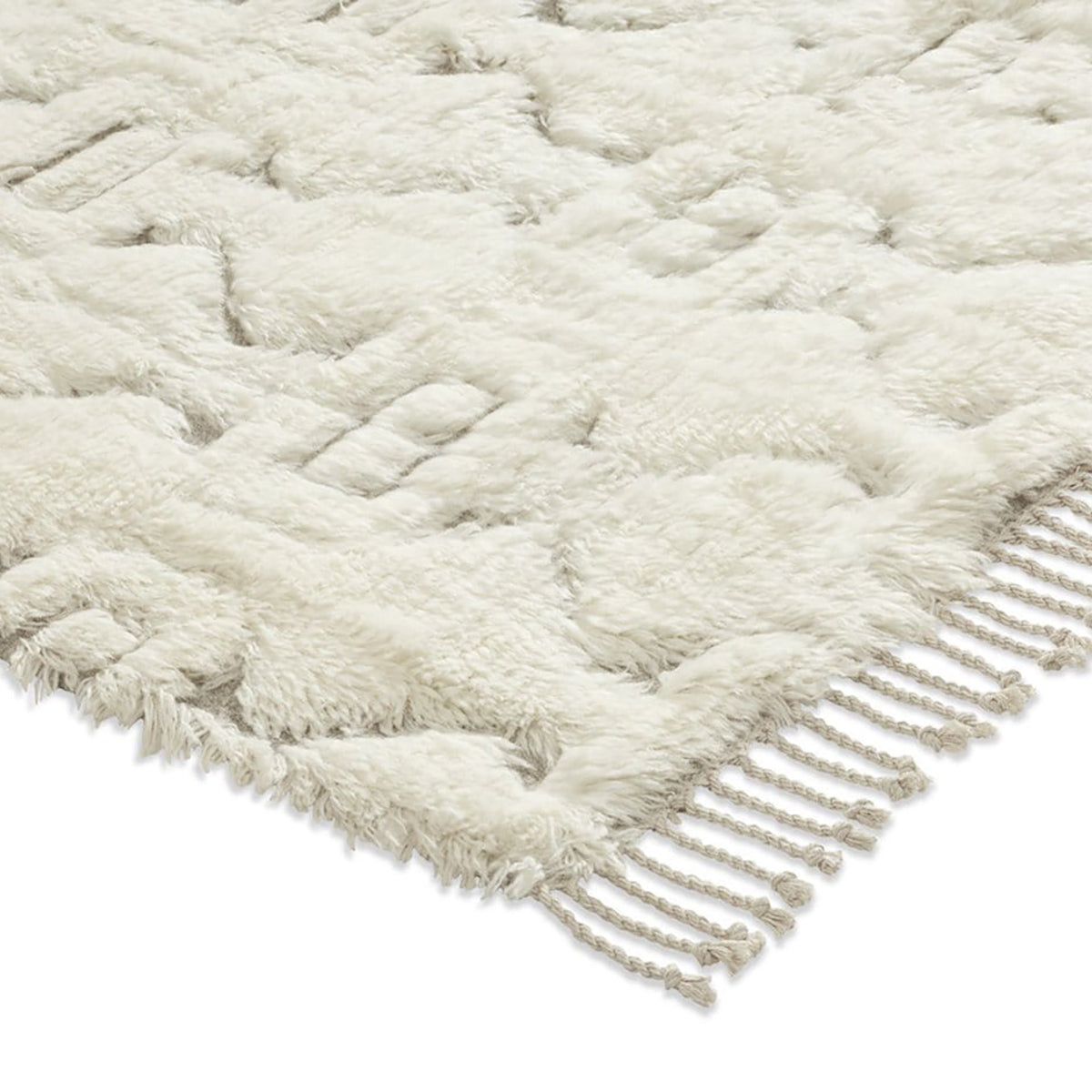 From the exclusive Miss Amara Collection, the Camilla Tribal Pattern Berber Wool Shag Rug pays tribute to the tribal roots of the Berber style and features a subtle tribal-inspired pattern beautifully carved into a thick pile that is finished with tassel details. Handwoven in an ancient pile knot technique, a high and dense pile of soft fibres results. Wool-washed and dried in the natural sunlight for a softer, relaxed finish that will instantly look at home in a bedroom or living space.
