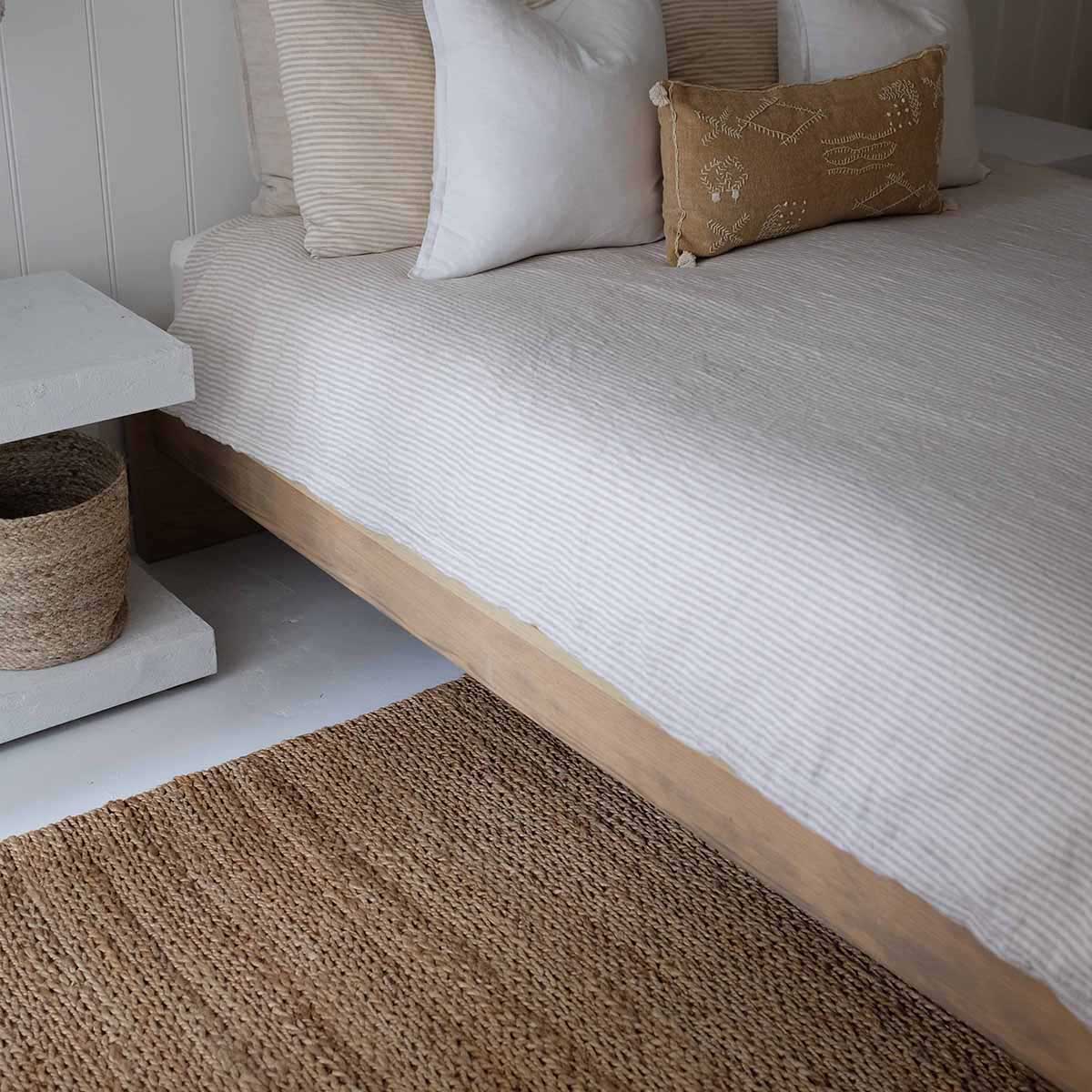 The Indigo Braided Jute Rug is a natural, undyed jute rug woven by hand into an intricate braided weave., Indigo has been hand-loomed in India from 50% eco-friendly jute fibres and 50% cotton, featuring stunning organic textures in a lovely blend of brown and green tones. Indigo is a versatile piece that will seamlessly suit a variety of different interiors from bohemian, to coastal, to contemporary styled bedrooms or living spaces.
