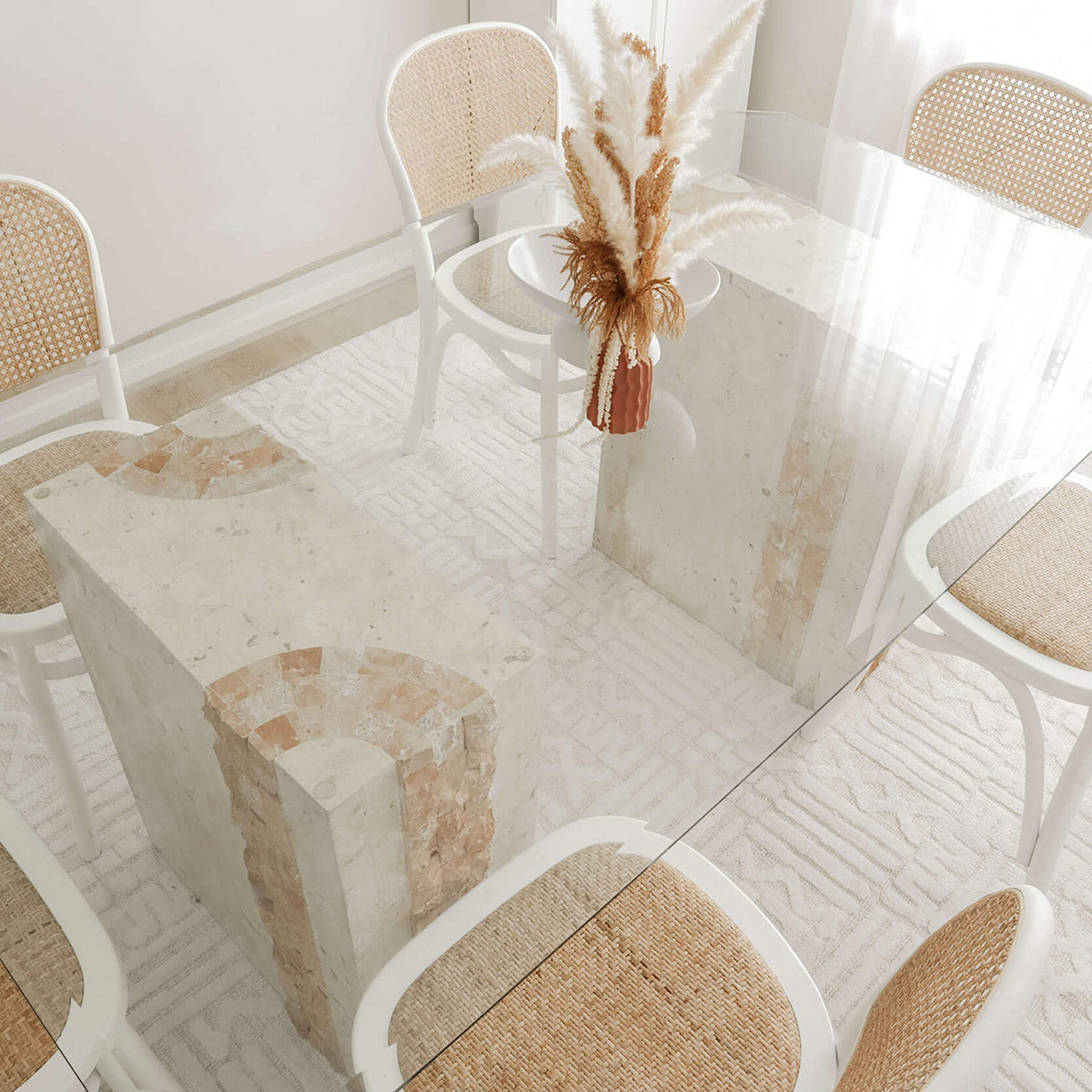 The Kalinda Geometric Tribal Rug is a stunning transitional warm beige and ivory rug crafted with a unique textured high-low tribal print. Inspired by the natural lines and organic shapes of nature, this design celebrates the deep detailed carved contours and tones of natural rock formations whilst showcasing a versatile colour palette to complement any style. Made in India with amazing low-maintenance benefits, it features a stain-resistant and durable 10mm hi-low super soft microfibre polyester construction that is ideal for high-traffic zones, kid and pet-friendly homes.