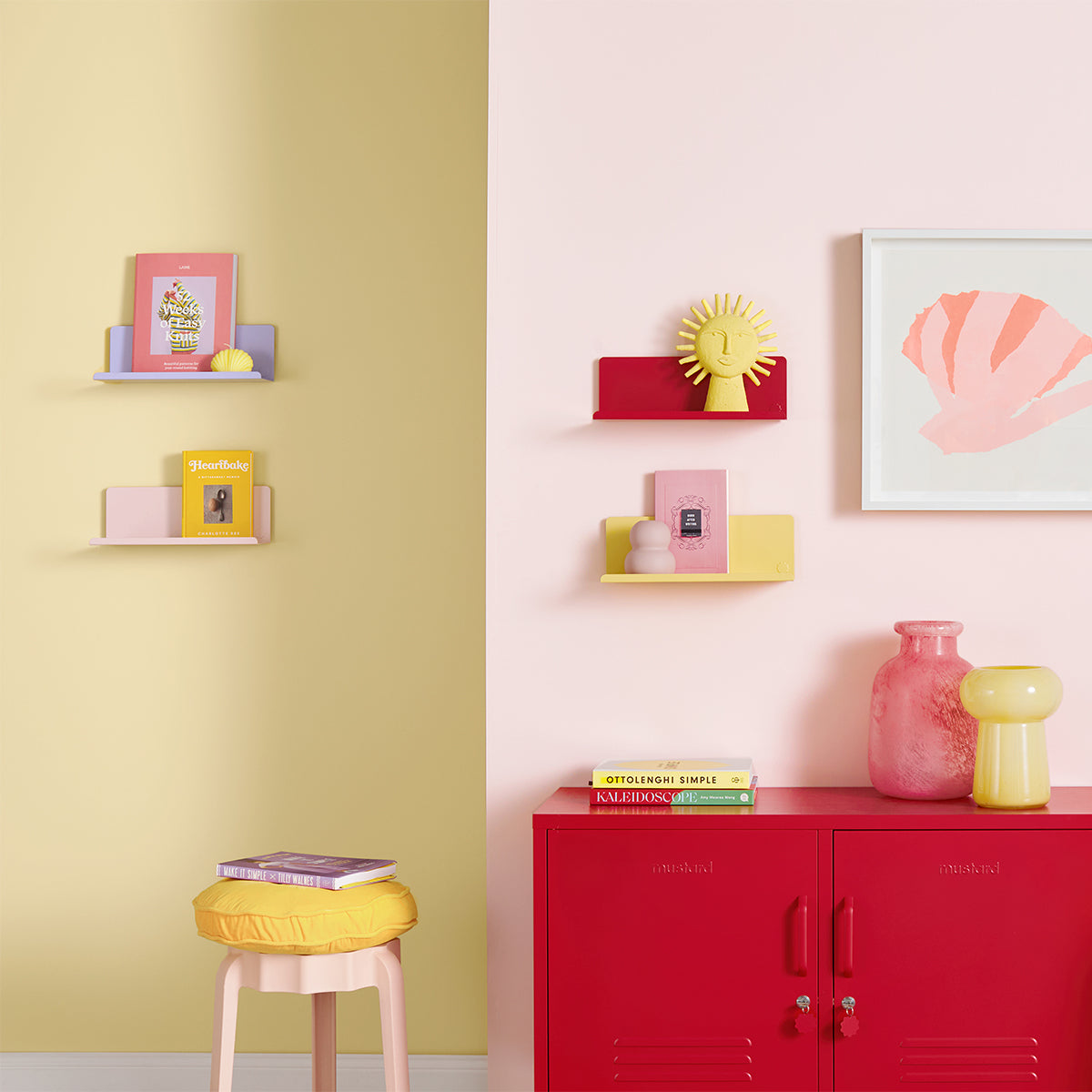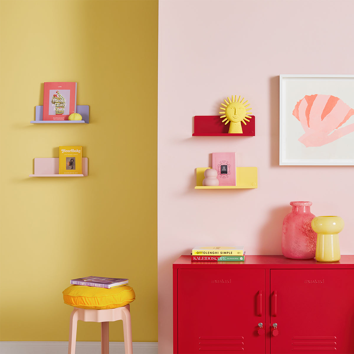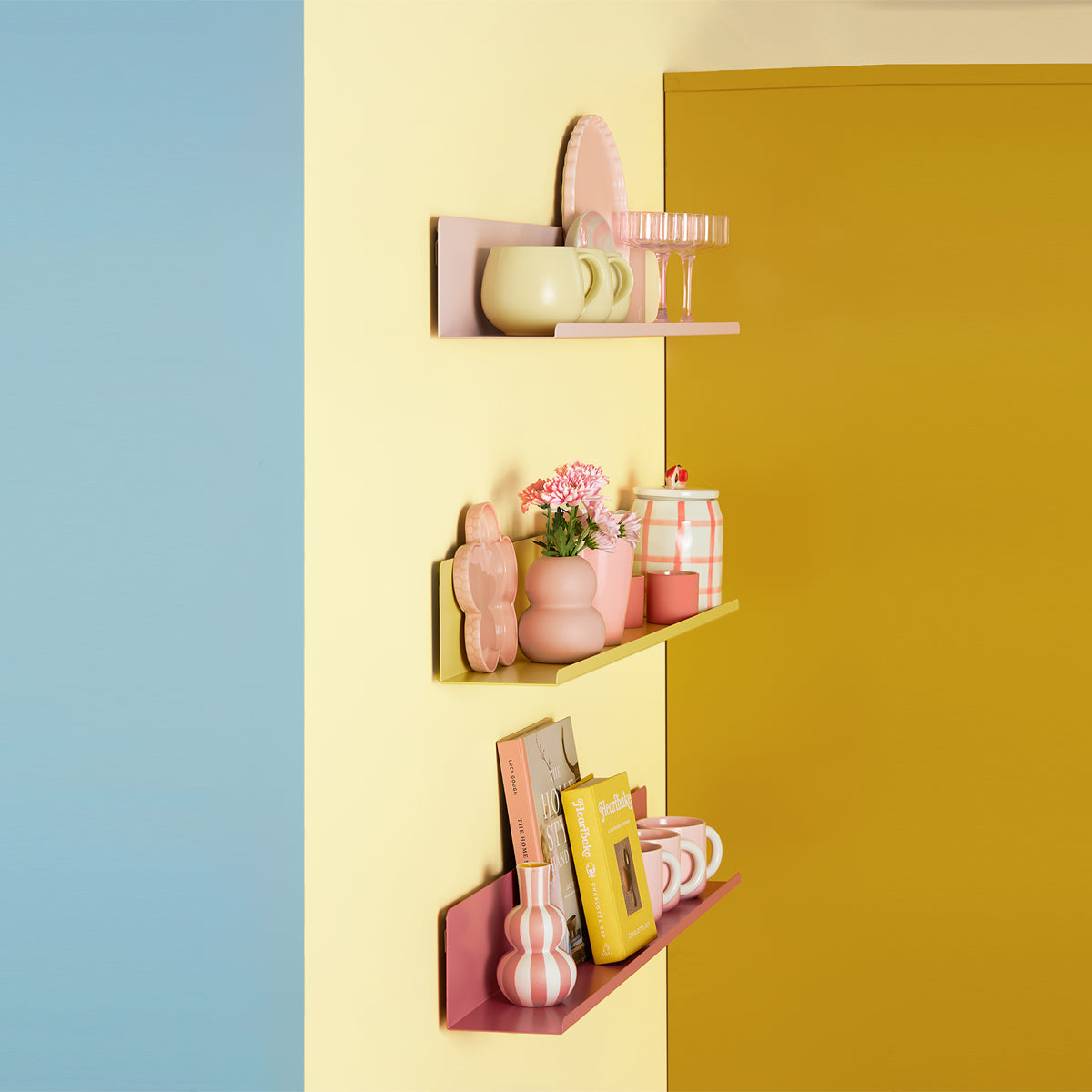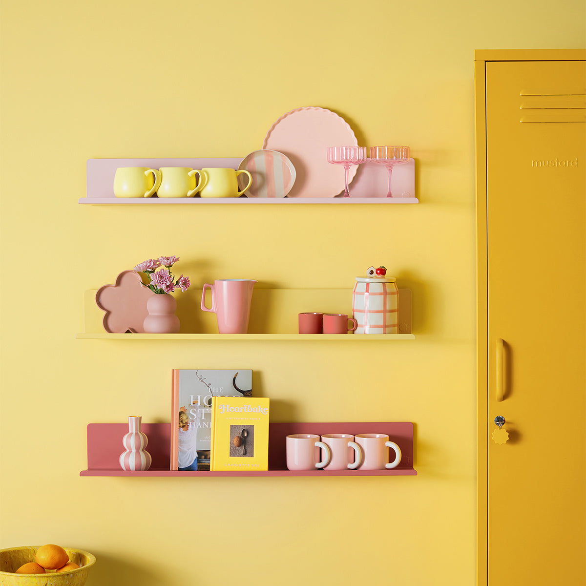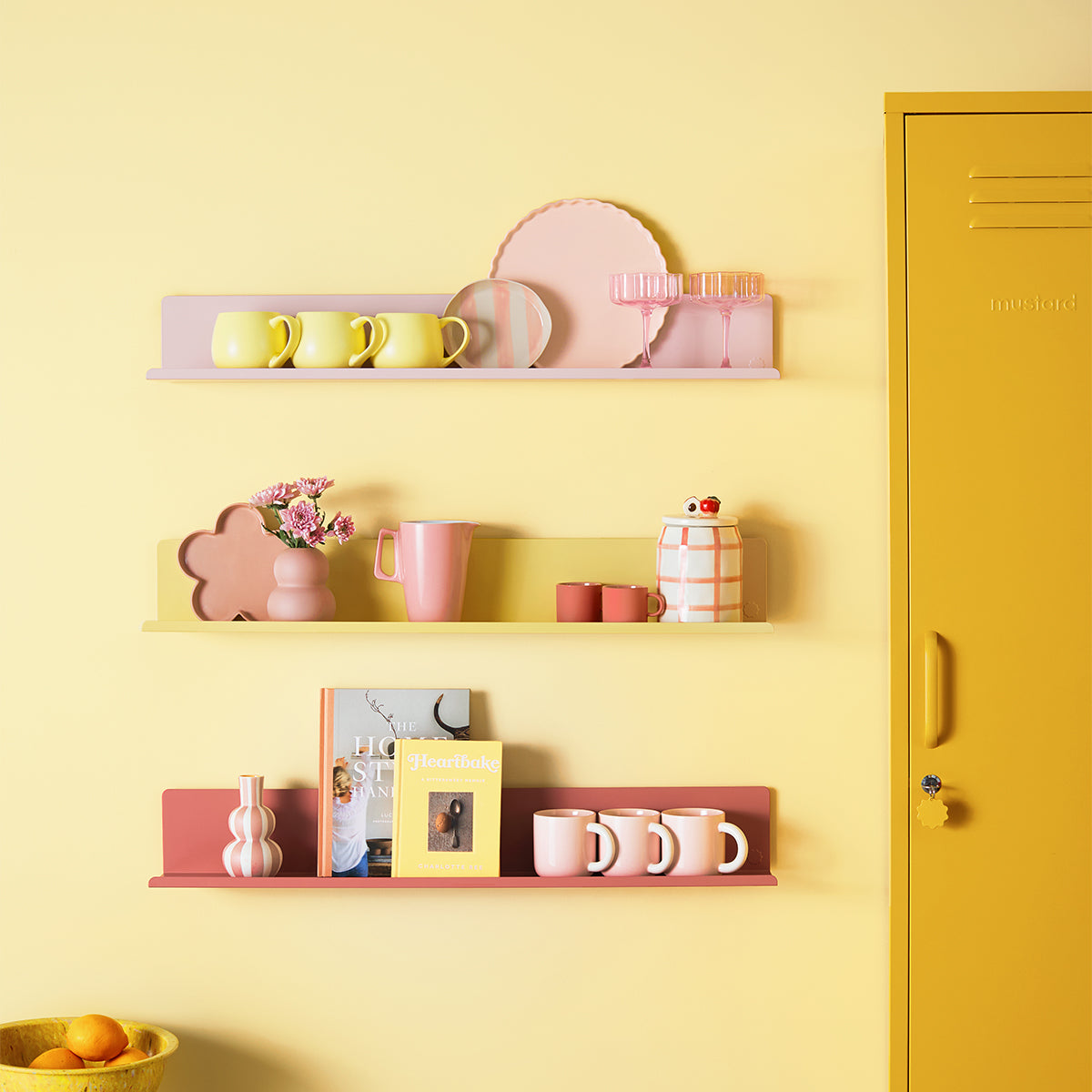 The Ledge is a chic floating shelf with flair designed for modern living. Its sleek form, powder-coated finish and medallion detail make it worthy of your space. Available in two sizes, the Ledge is made for home, work, play and display. Pick your favourite colour or mix and match the only thing better than one Ledge is lots of them!