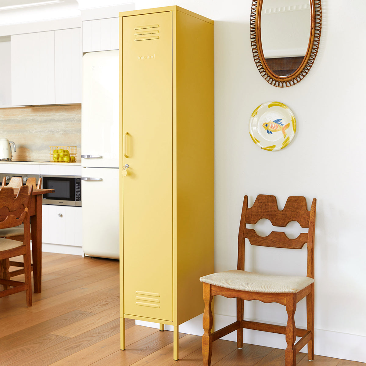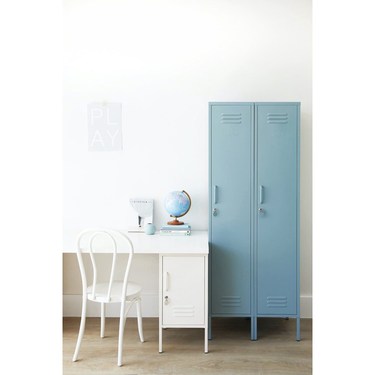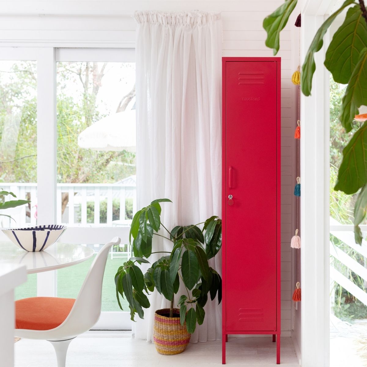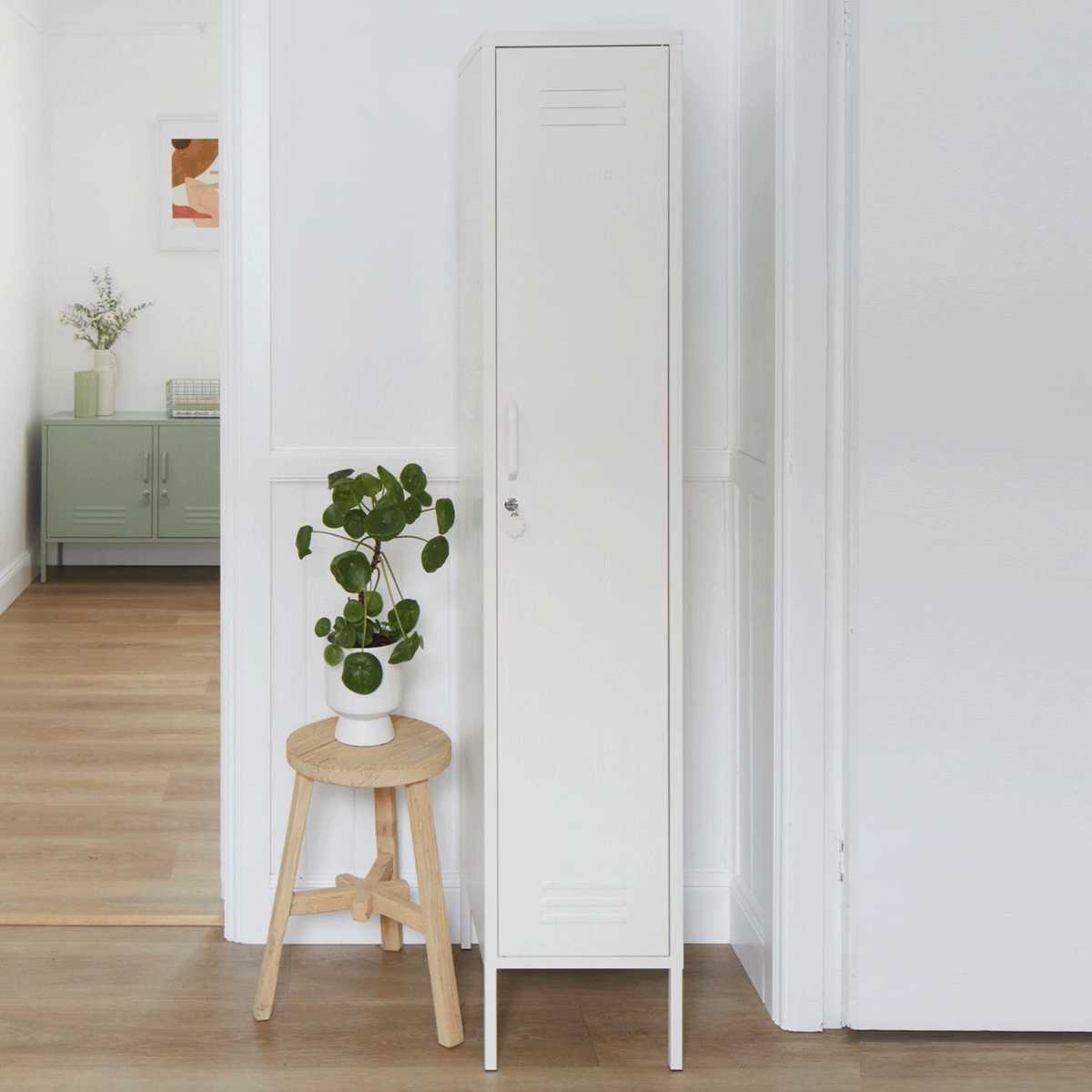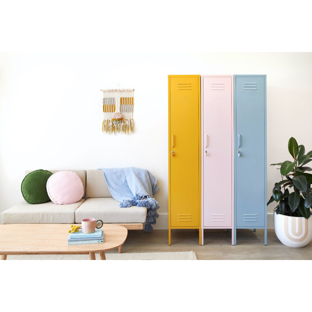 The Skinny locker wants to help. She'll keep your stuff neat and tidy and you will be amazed how much you can fit inside. Standing alone or paired with friends, The Skinny is pretty, practical and cool. It is the same width and depth as The Shorty but the same height as The Twinny. So, all that height gives you huge amounts of storage space for minimal floor space.