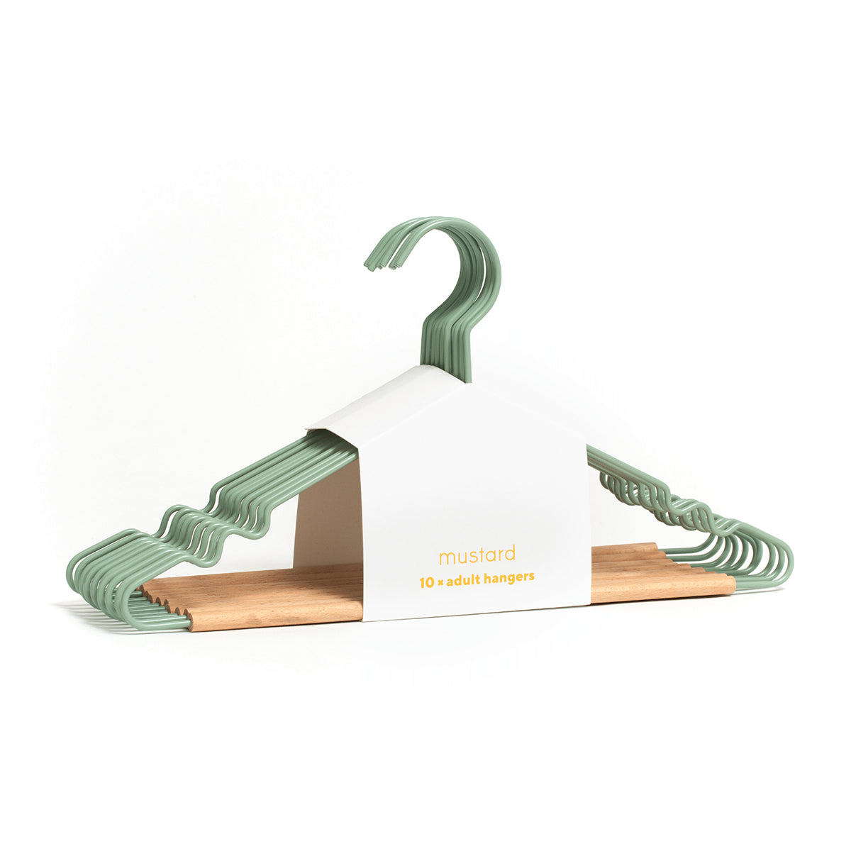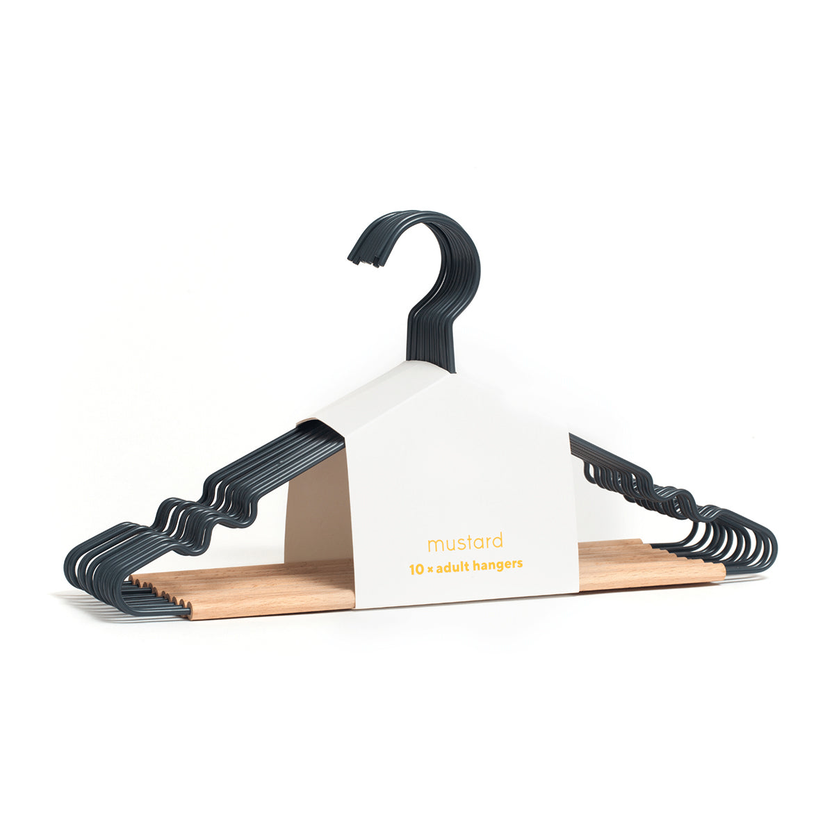 Mustard Made's fancy hangers have a smooth matte powder-coated finish, a timber detail and a mustard signature 'squiggle' on the sides for added cool factor. These hangers will fit perfectly in your Twinny or Skinny locker.