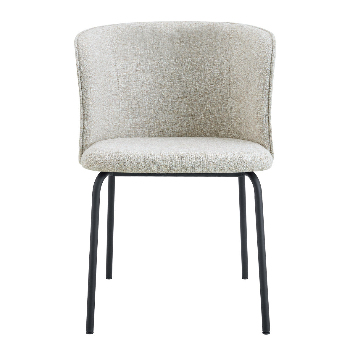 The Anita Fabric Dining Chair is a refined take on modern seating, featuring a fabric-upholstered seat and backrest for a soft, inviting feel. Its subtle curves balance effortlessly with slender metal legs, creating an elegant yet understated silhouette. Available as a set of two, this stool is perfect for contemporary dining spaces, offering both comfort and style with a timeless appeal.