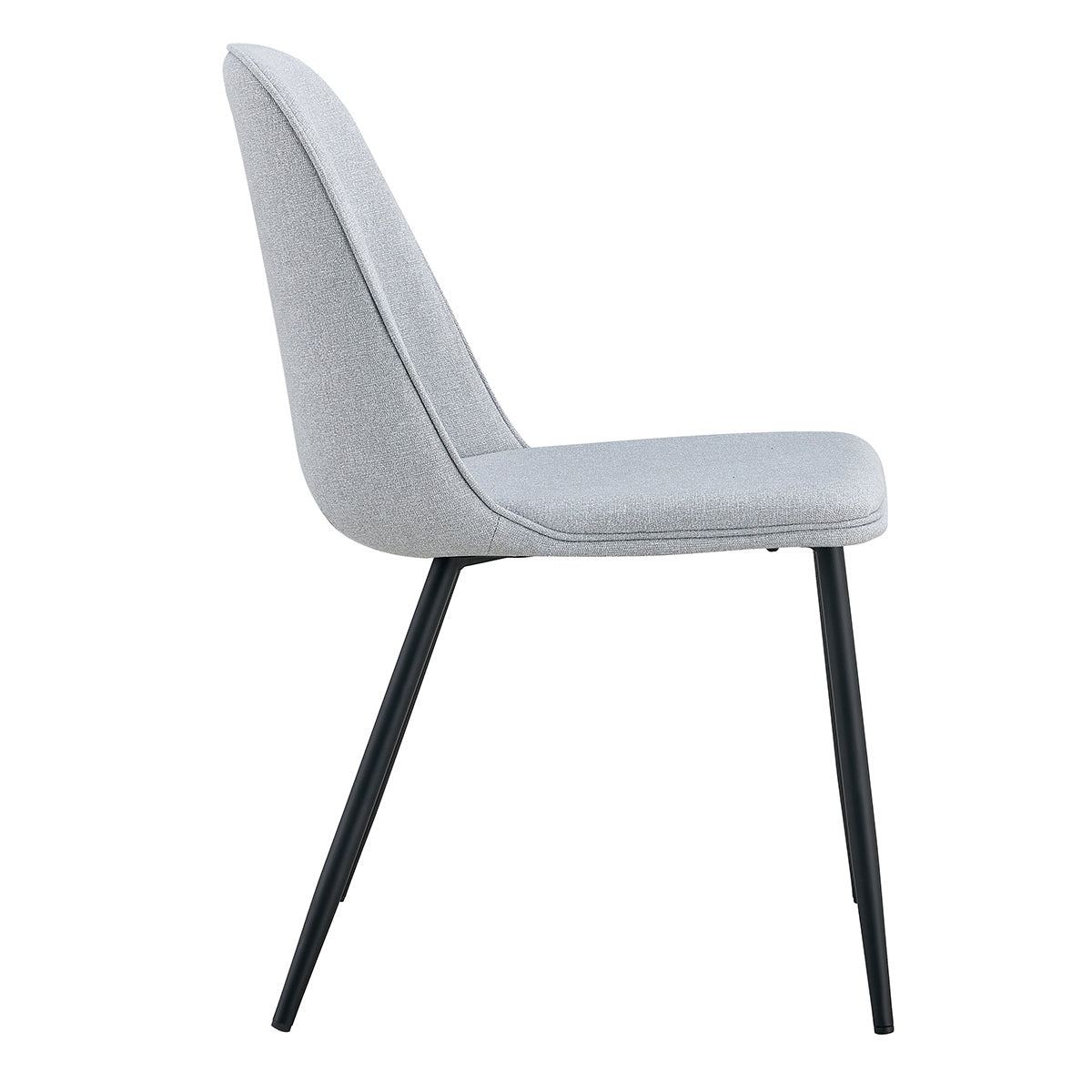 Level up your dining experience with the sleek, modern style of the Jude Fabric Dining Chair, designed to blend sophistication with comfort. The high backrest and seat are covered in a plush fabric, with subtle rounded edges to add an extra touch of elegance. Resting on slender black metal legs, this chair offers stability whilst maintaining a light and airy form. Perfect for any dining space, this piece invites you to sit back and enjoy your meal in style.