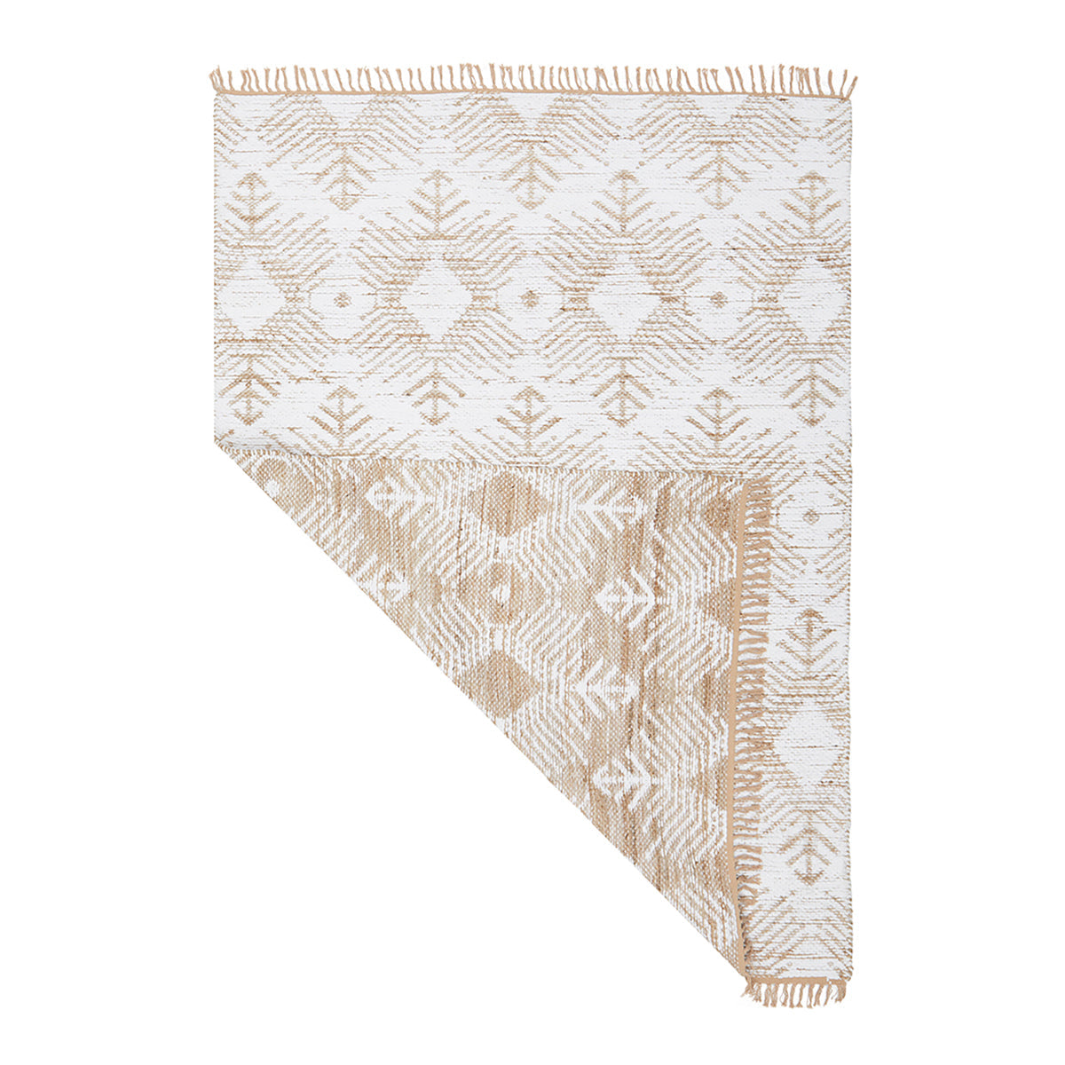 The Bodhi Rosa Rug is part of the bohemian-inspired Bodhi collection, featuring interesting tribal motifs in a neutral palette. Lovingly hand-loomed in India by skilled artisans, this double-sided rug comprises a flat woven cotton and jute pile, giving it a natural element that will add warmth to any space. The two fringed edges add character to this design, whilst the timeless neutral tones provide versatility to suit various interior styles.
