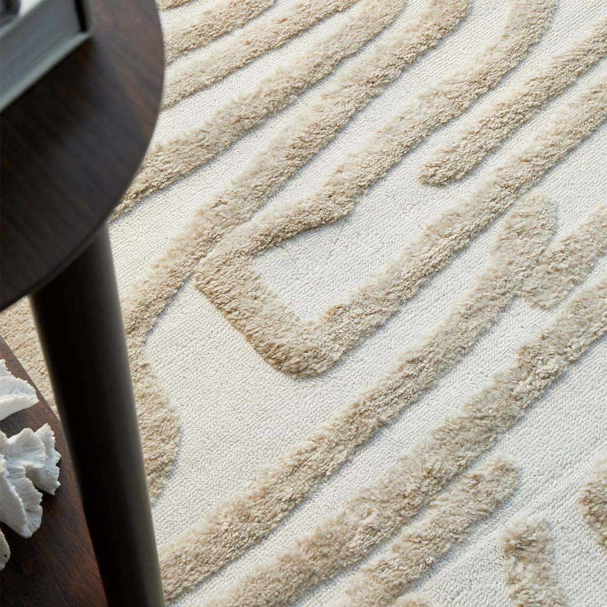 Experience contemporary elegance with the Marigold Jayla Rug. Designed for modern interiors, this rug boasts a soft pile and a beige, creamy colour palette that effortlessly complements neutral decor homes. The high-low pile creates a unique textured effect, giving rise to an organic line pattern that adds depth and visual intrigue. Perfect for entryways and hallways, this runner elevates your space with modern sophistication and cozy comfort, creating a stylish and inviting atmosphere in any room.