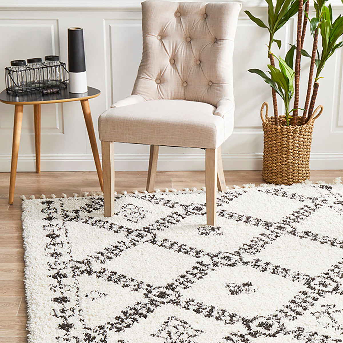 The Saffron 33 Rug is part of the broader Saffron collection that draws inspiration from traditional Moroccan designs and translates them into modern-day sensibilities. The Saffron 33 Rug in White features a plush design in a neutral palette that offers seamless integration into any style of living or bedroom space. It has been power loomed in Turkey with enhanced polypropylene to create its non-shedding, easy upkeep. The tassels are an interesting element that adds to its textured look, elevating any living space into a decadently cosy atmosphere.