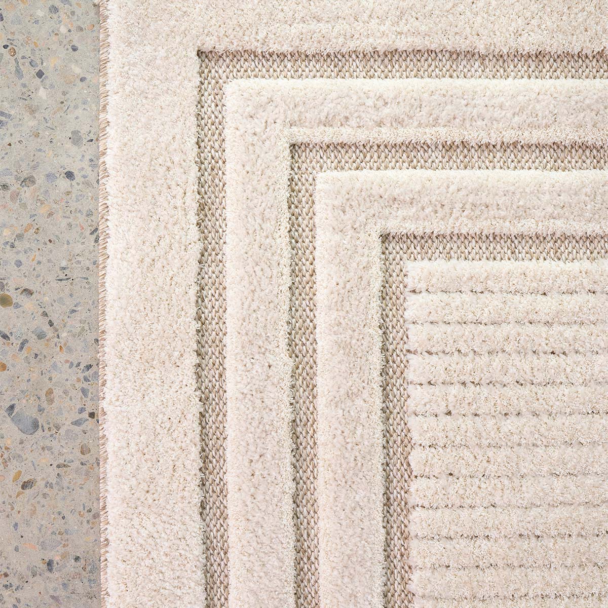Bring refined elegance to your home with the Villa collection. Each rug features a harmonious blend of geometric and organic patterns, including intricate borders, delicate small squares, and fluid swirl designs. Crafted in soothing neutral tones, these rugs integrate seamlessly into any setting. The unique high and flat weave construction adds depth and texture, offering a plush and luxurious feel underfoot. Perfect for a variety of interior styles, from modern to classic, the Villa collection enhances your space with its inviting yet sophisticated presence, making it a timeless addition to your decor.