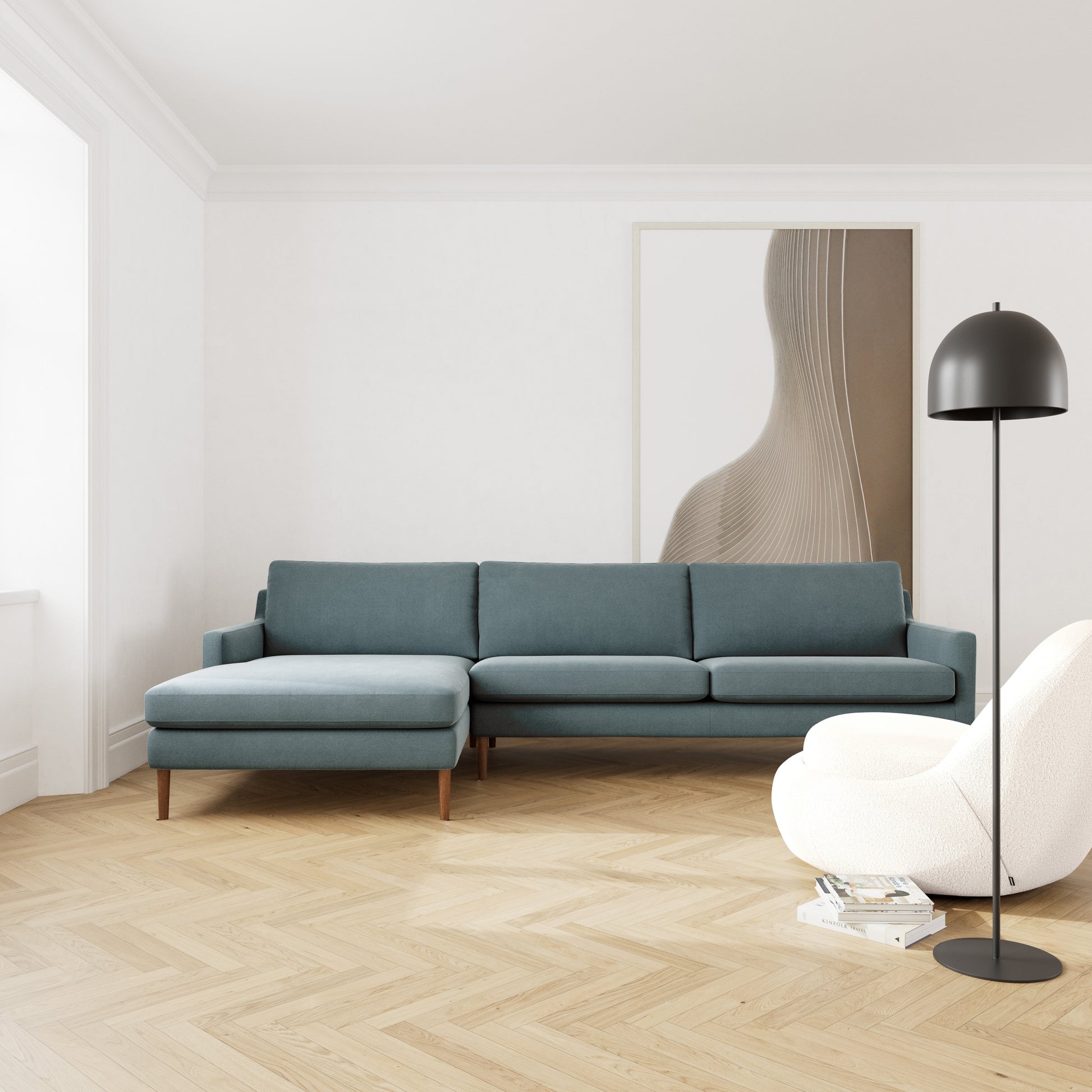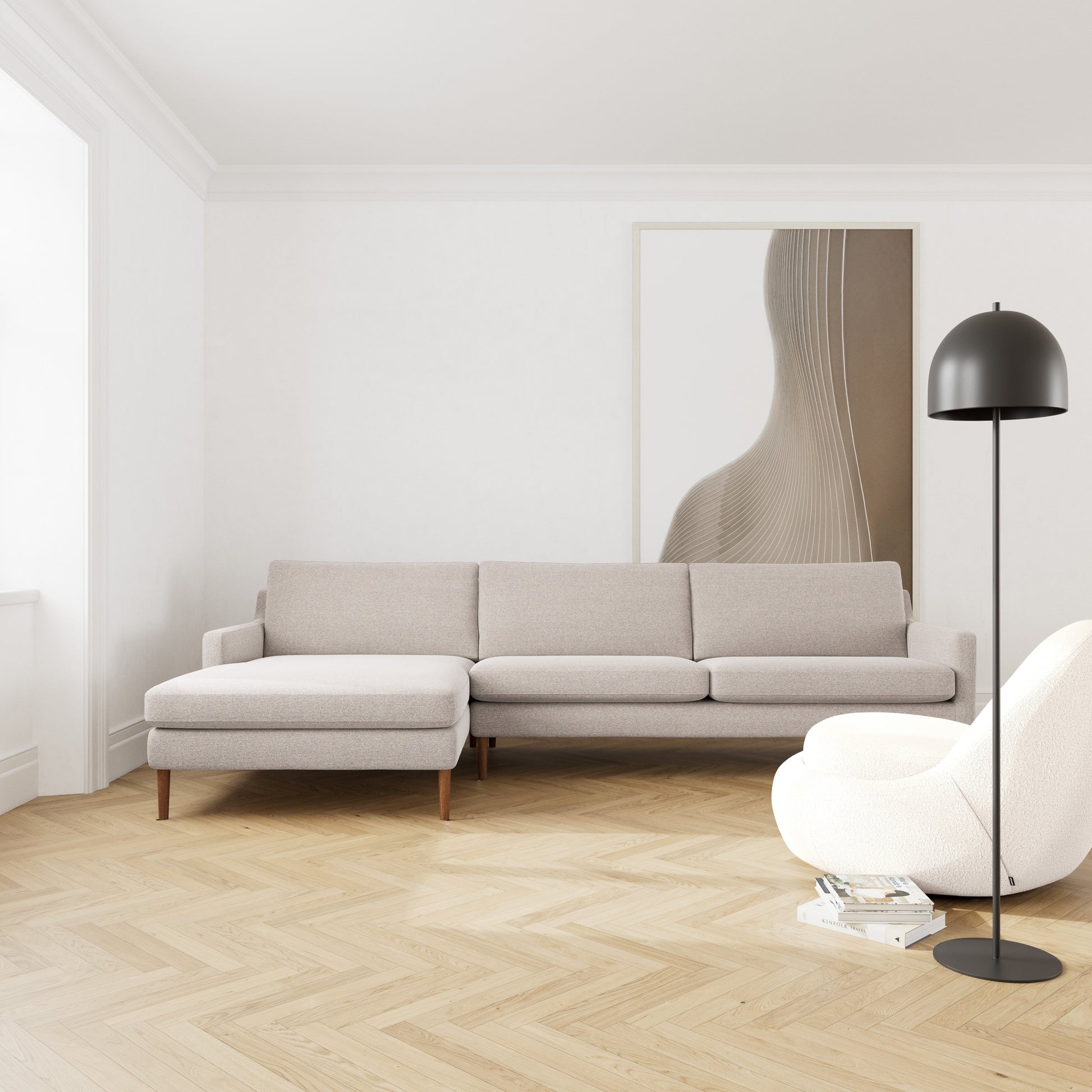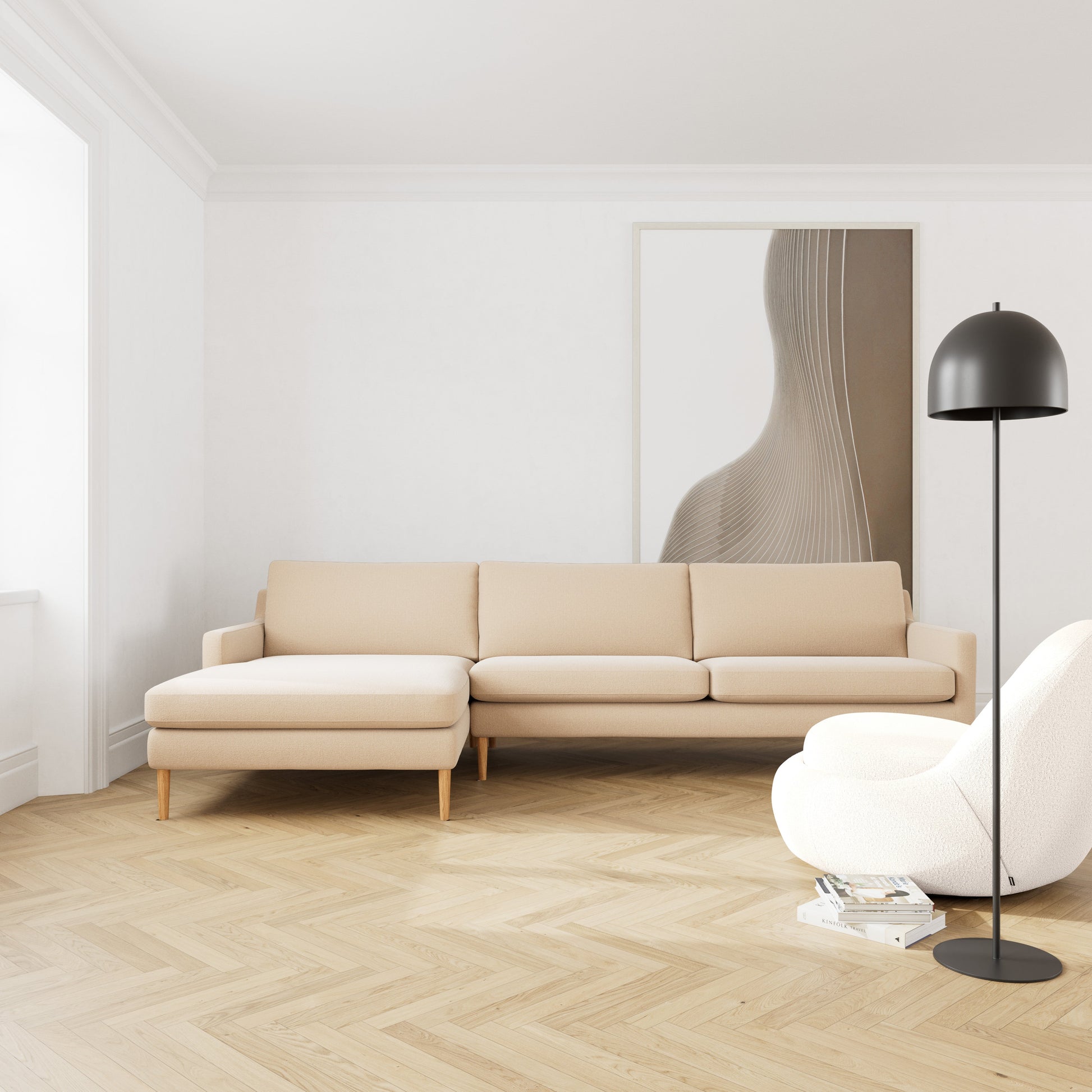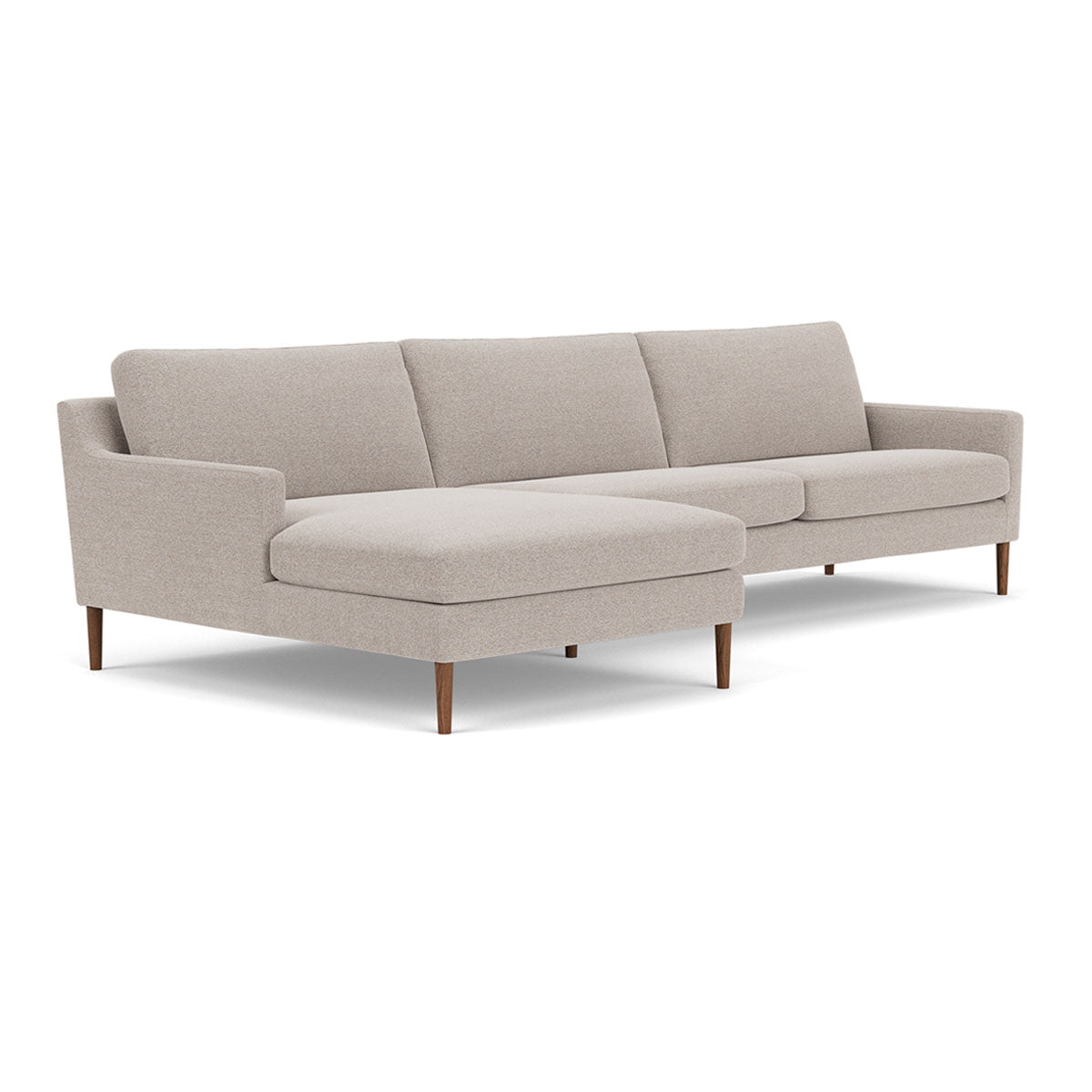 The Astha Fabric Left Chaise Sofa offers a perfect blend of comfort and modern elegance, featuring a sleek design with clean lines and upholstery. Its spacious seating area is complemented by plush, cushioned support, ideal for relaxation. It provides additional comfort, allowing you to stretch out and unwind. Crafted with sturdy legs, this lounge chair ensures durability while maintaining a light, airy feel.