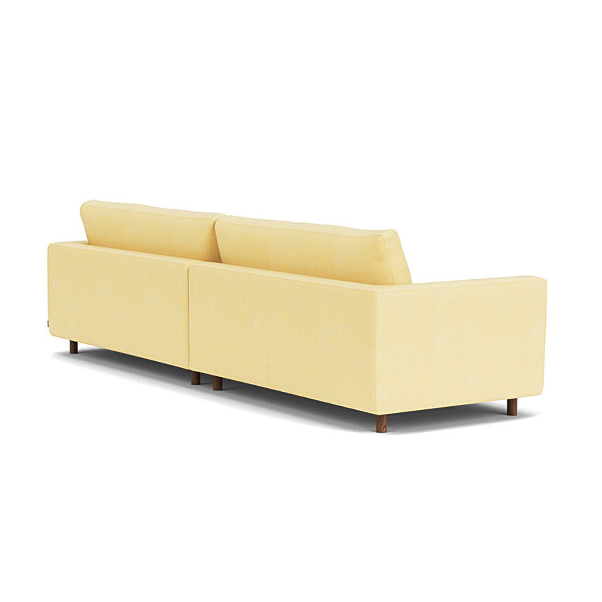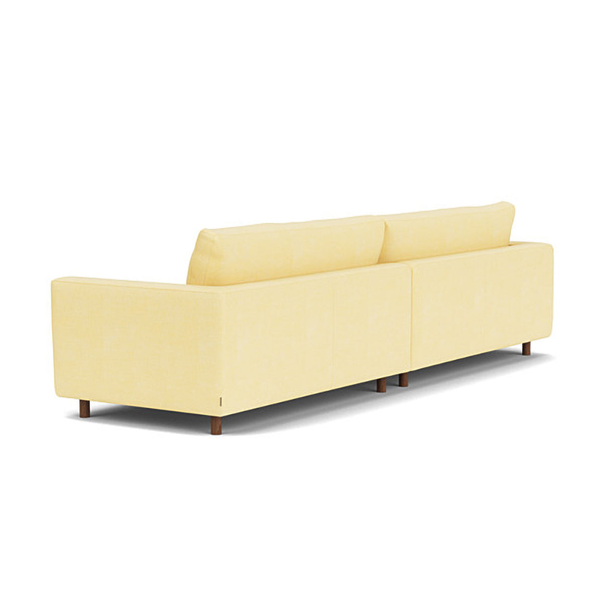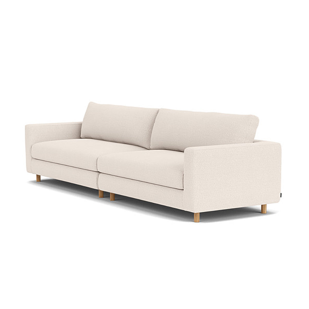 Dylan is a 4 seater lounge fabric sofa with a classic Nordic look with its angular frame, soft loose cushions and discreet cylinder legs. Here it is upholstered in boucle with a soft, woven polyester quality in a tone-on-tone herringbone pattern in a range of natural colours. The cover on Dylan is loose and can be easily taken off and on, either to clean it or to change it to a completely new colour and a completely different textile. That way, the sofa can stay nice for longer, and that you can change the look of the sofa in an easy and economical way.
