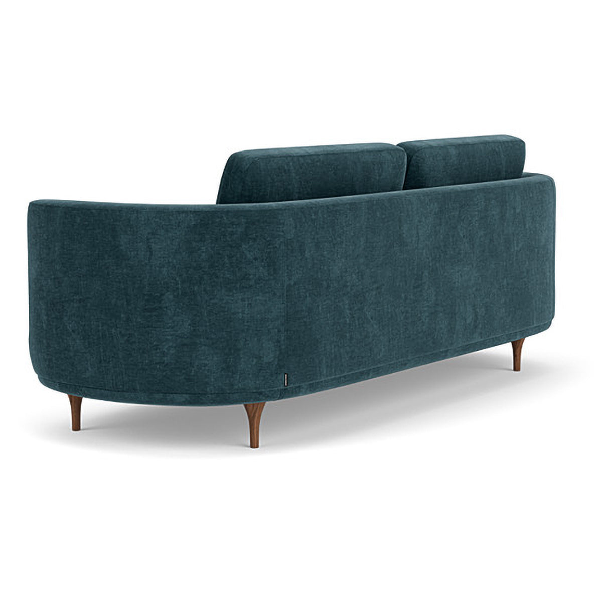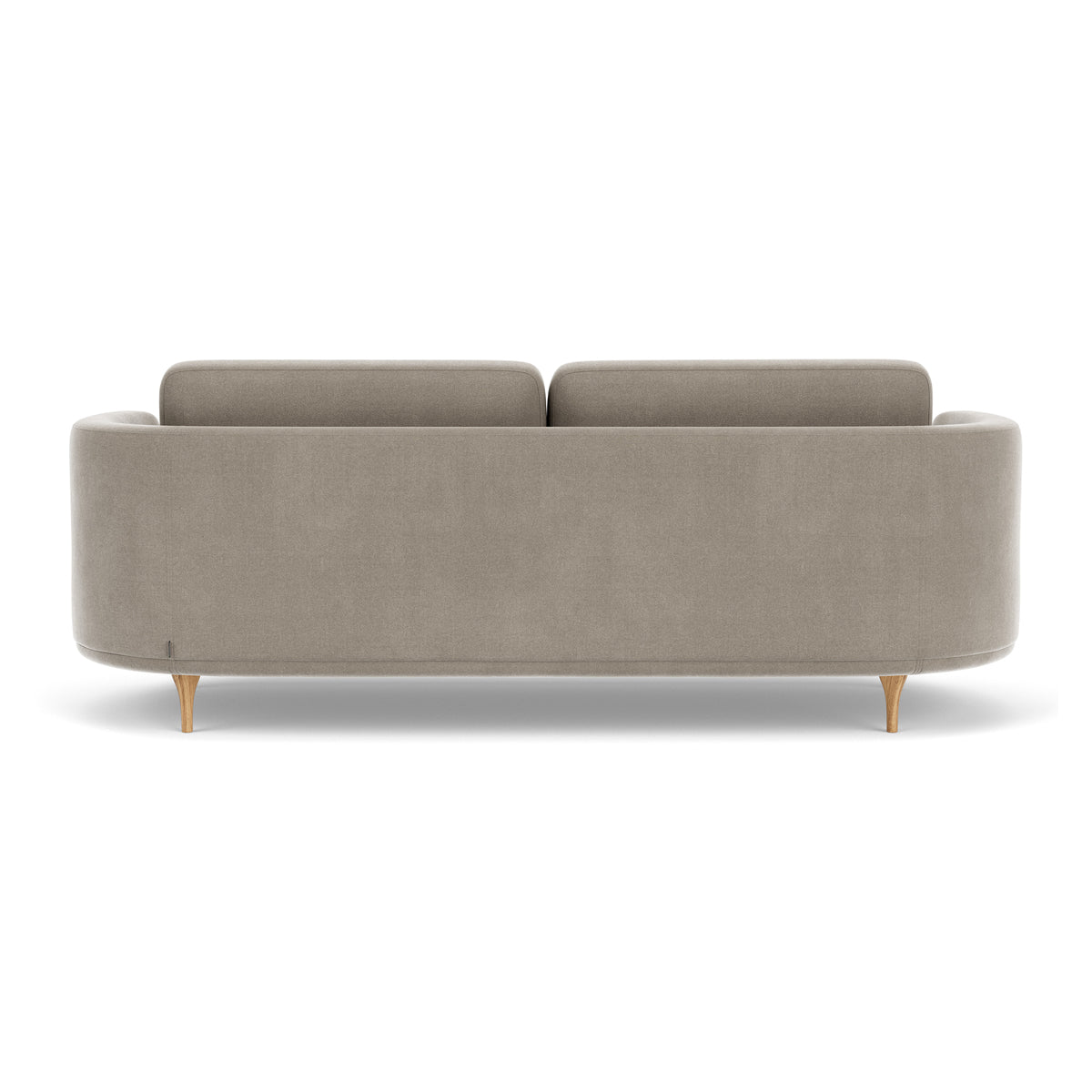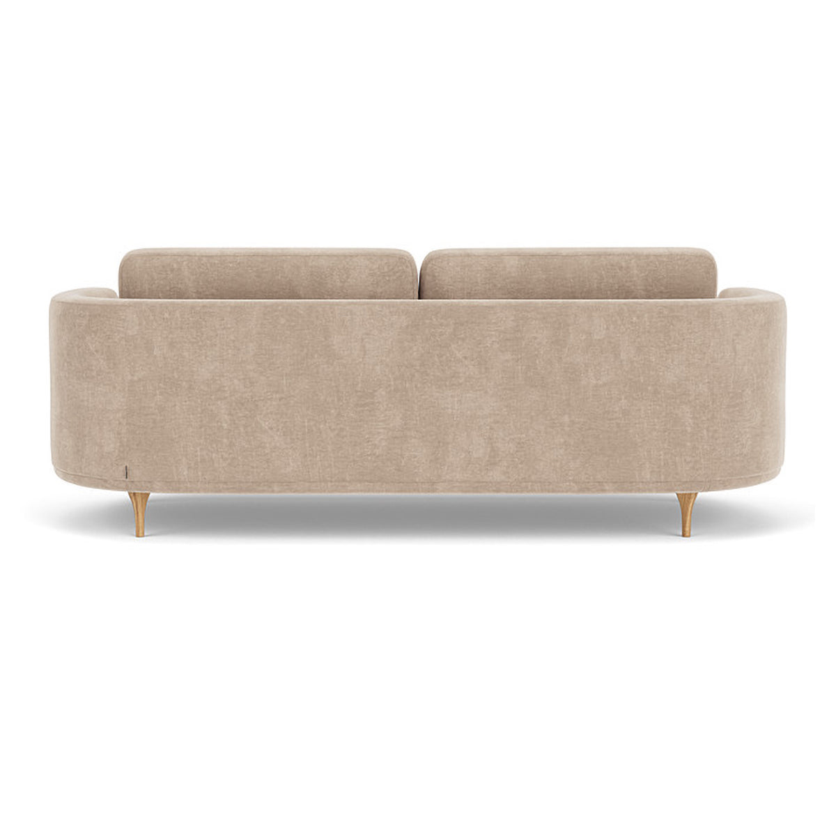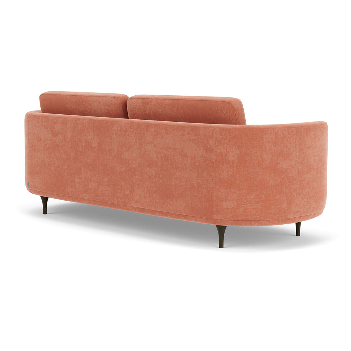 Elinor is a curved 3 seater fabric sofa with a soft, retro look. It embraces and invites relaxation and tranquility, and at the same time adds a feminine elegance to your living room. The elegant, slender wooden legs complete the design and at the same time create a fine contrast between the voluminous back and the slender legs.