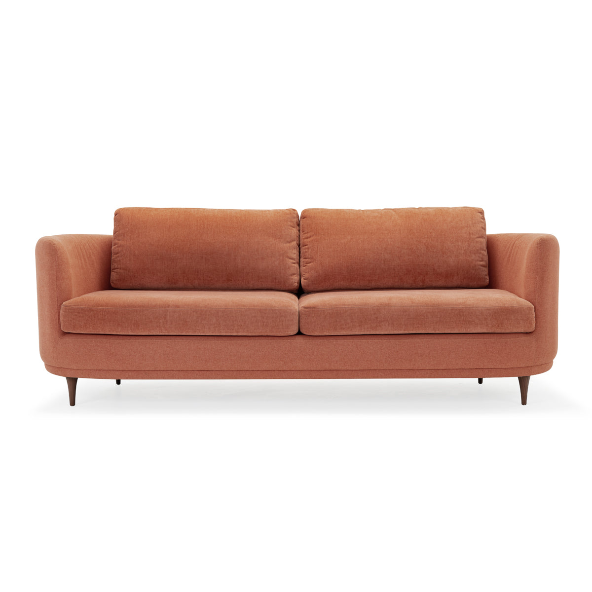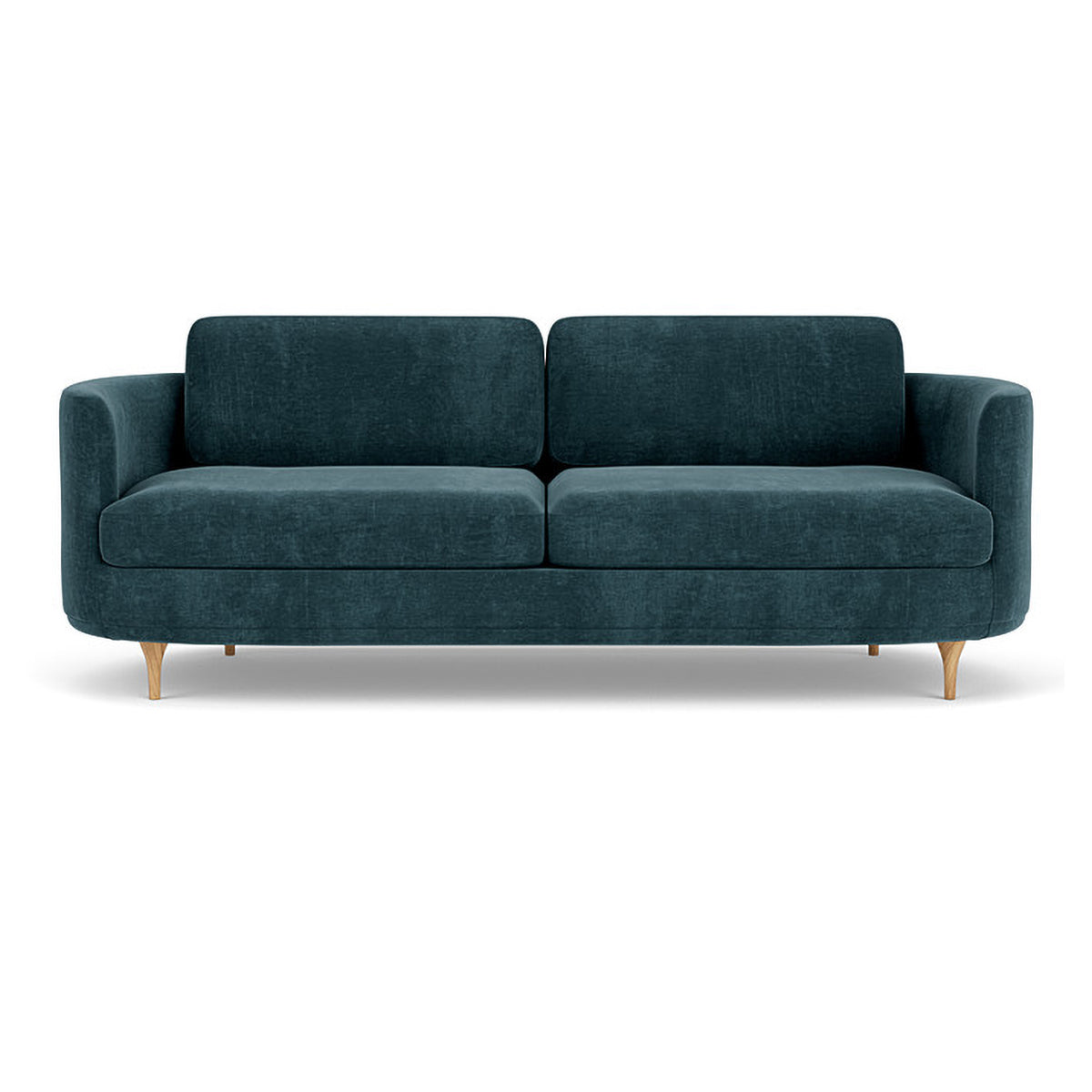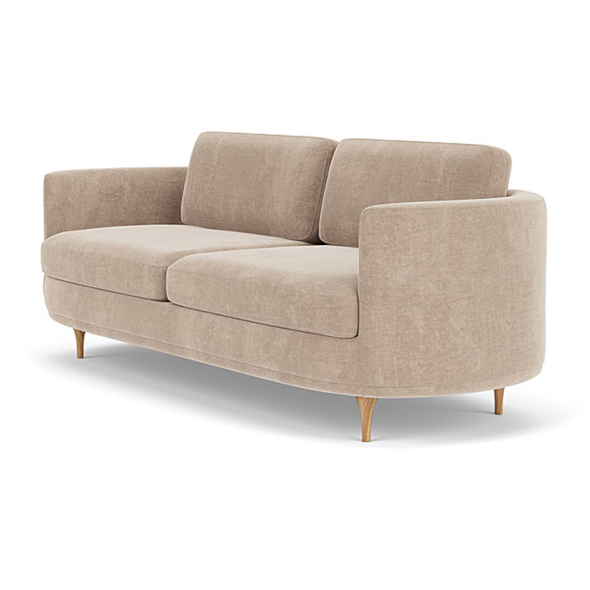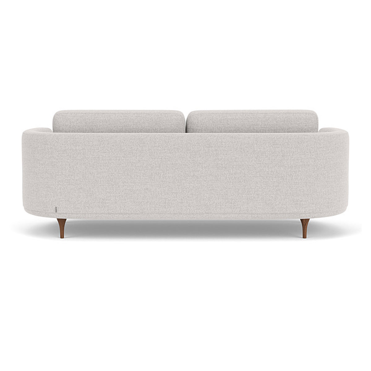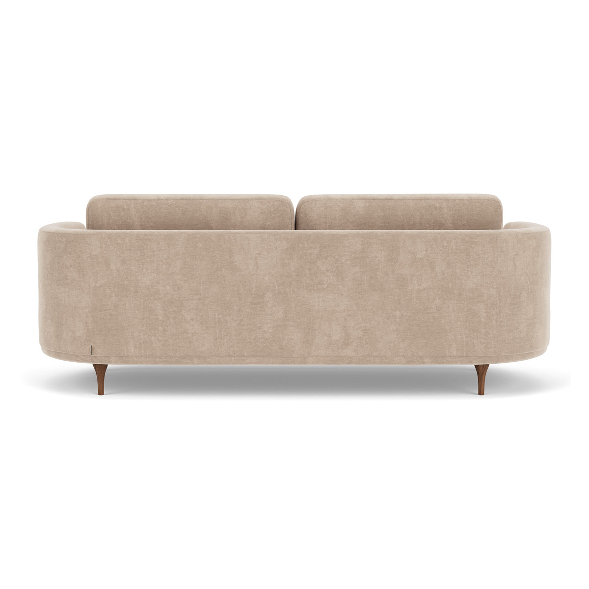 Elinor is a curved 3 seater fabric sofa with a soft, retro look. It embraces and invites relaxation and tranquility, and at the same time adds a feminine elegance to your living room. The elegant, slender wooden legs complete the design and at the same time create a fine contrast between the voluminous back and the slender legs.