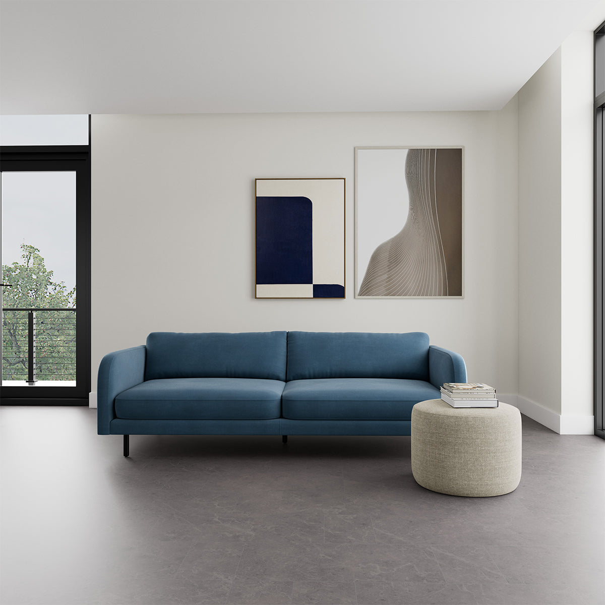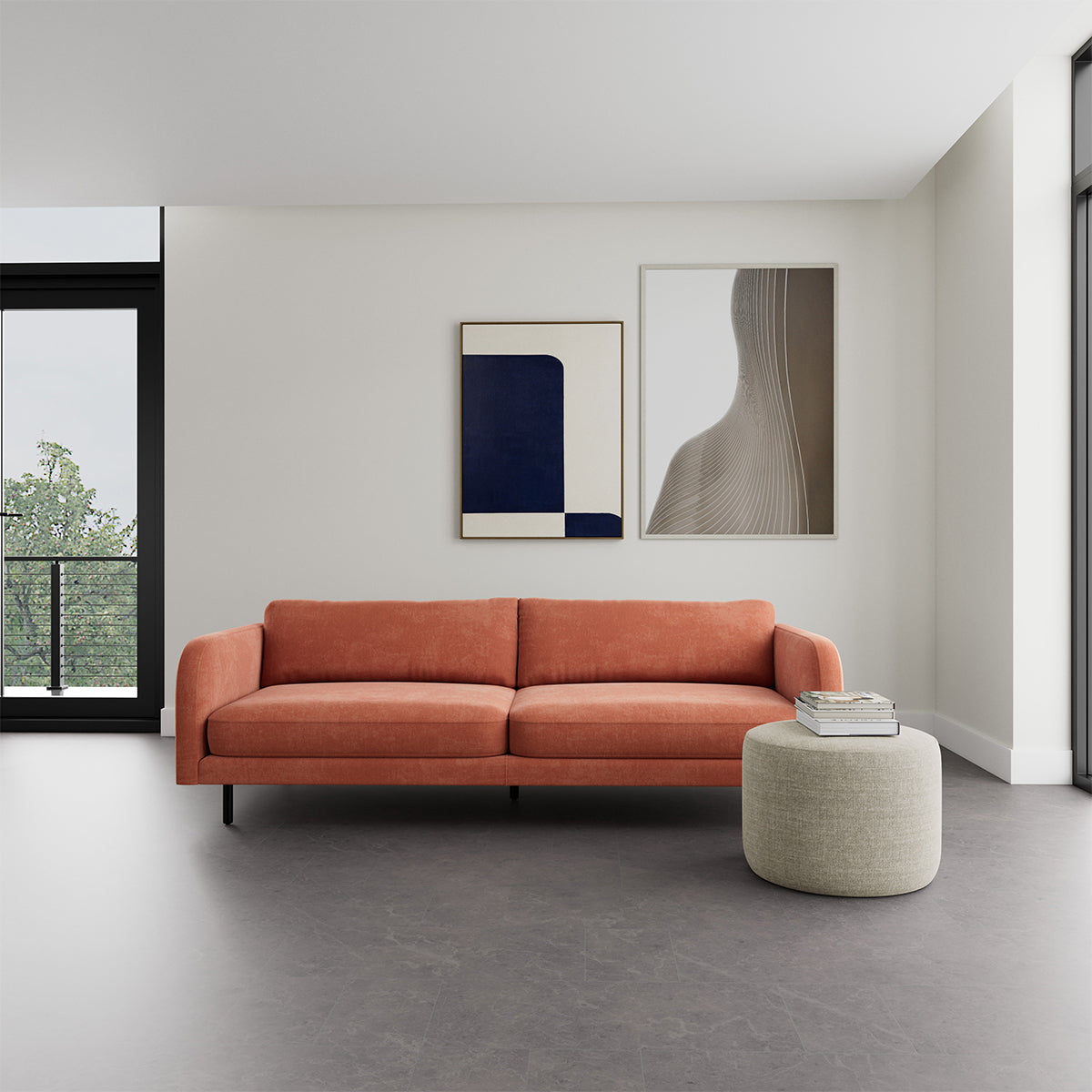 The Julia 3 Seater Sofa is a timeless design with a classic aesthetic and relaxed expression. Its simple rectangular silhouette is softened by rounded corners and plush cushioning, creating a subtle contrast against its slim metal legs. Designed for lasting comfort and enduring style, this sofa is a versatile addition that will look at home in any living room for years to come.