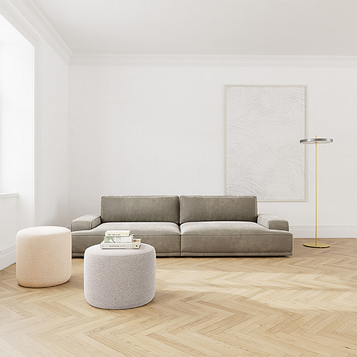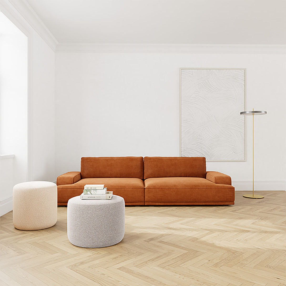 The Leonora Fabric 3.5 Seater Sofa is a luxurious floater sofa with contemporary style and ultrasoft comfort, ideal to style in any living space or lounge room. Covered in elegant fabric upholstery, its low-profile body and generously deep seat make it the perfect place to curl up and relax after a long day at work. It features squared armrests and large cushions to create supreme comfort, while its piped edge detailing adds an extra touch of interest to its sophisticated design.