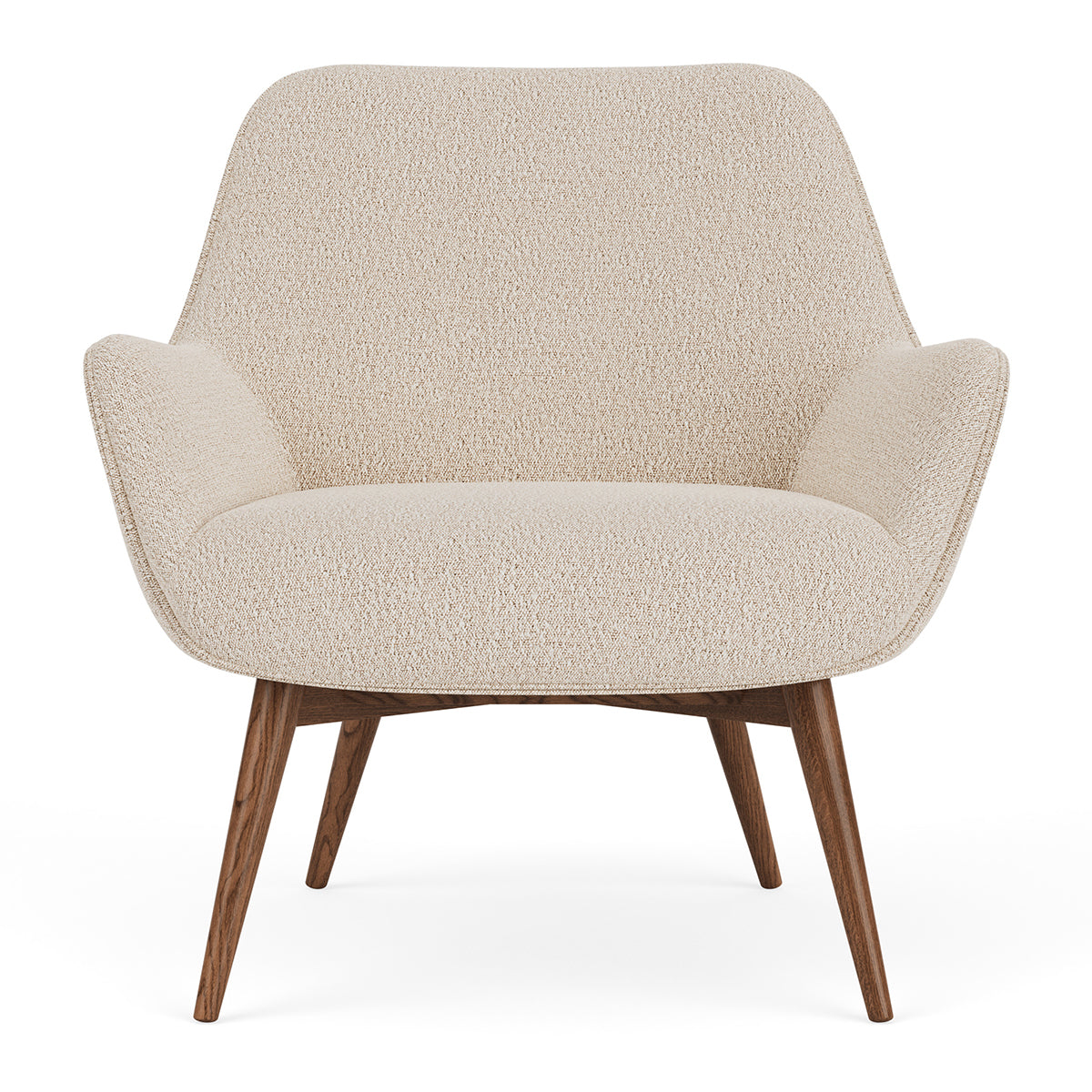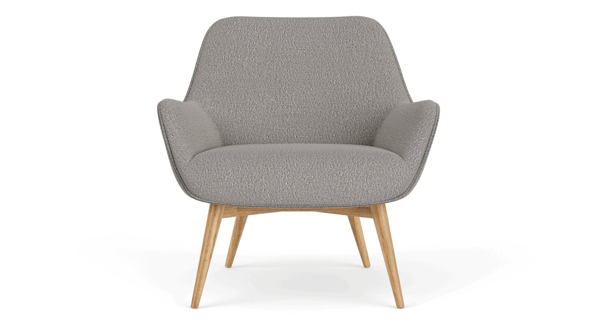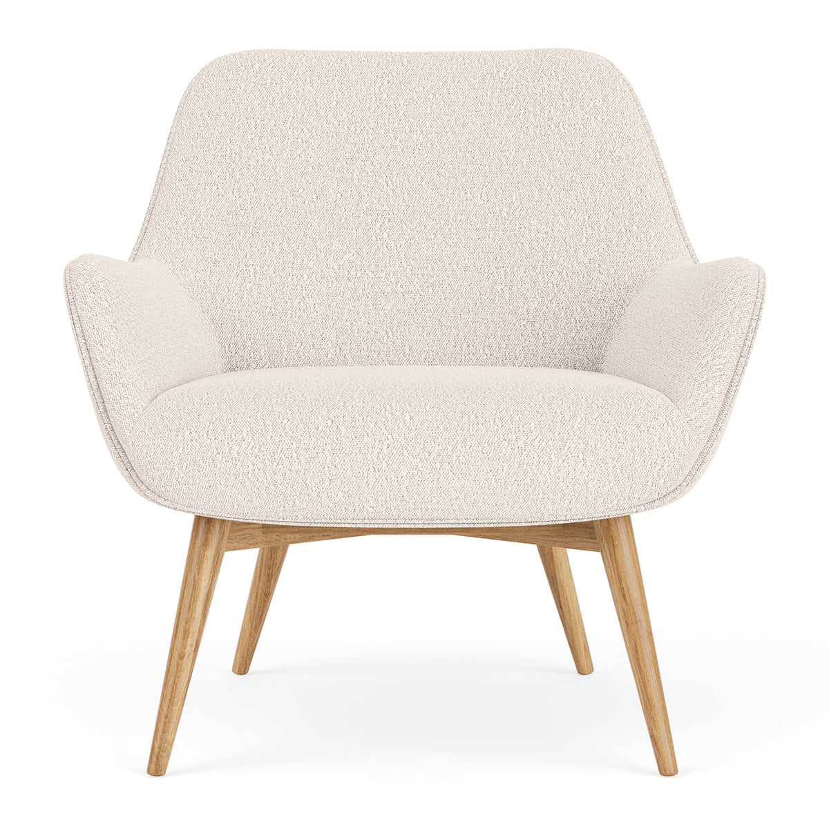 Elevate your living space with the Oscar Boucle Armchair, a stylish piece with a timeless blend of style and comfort. Available in a choice of oak or walnut finishes, the angular wooden legs provide a sturdy foundation while adding a modern element to its aesthetic. Its comfortable seat and armrests form a gracefully curved silhouette that exudes a subtle retro charm, and comes in a range of colours and upholsteries to suit your unique taste.