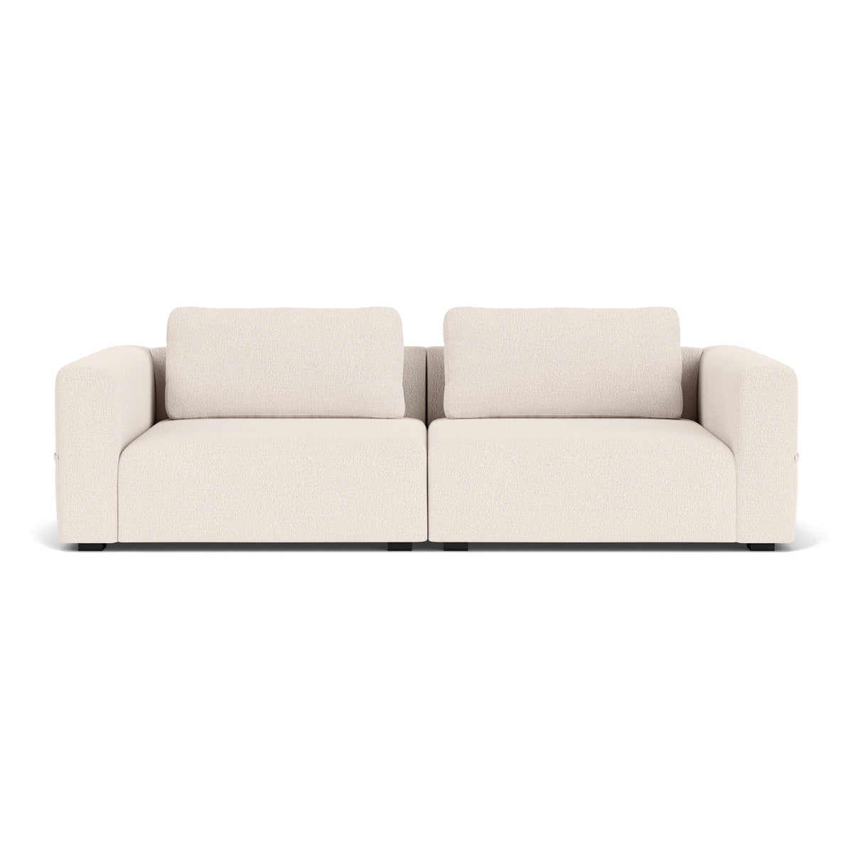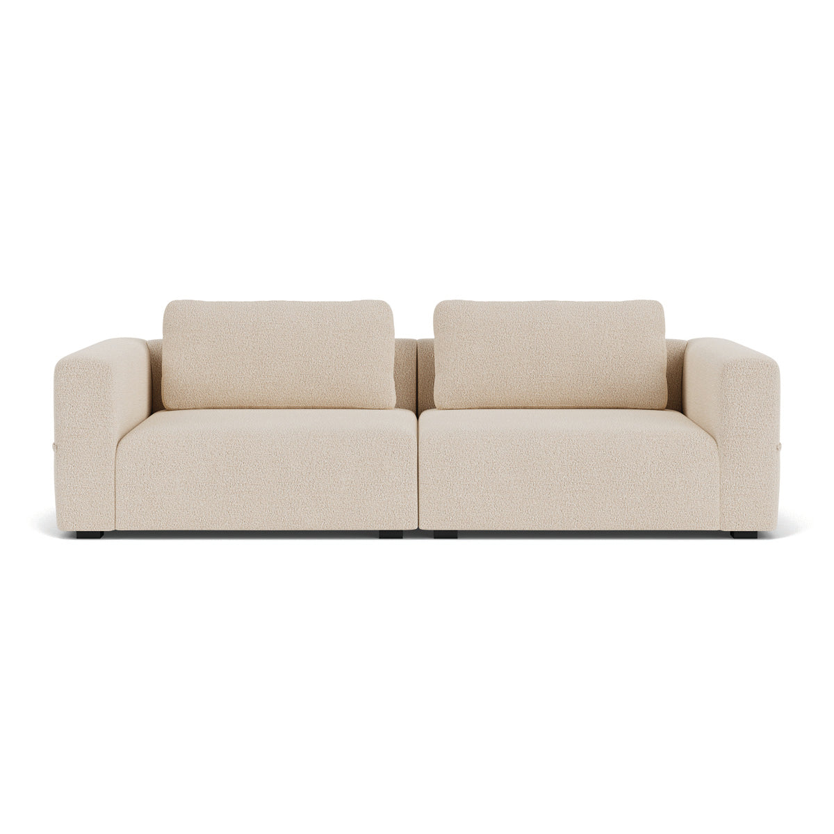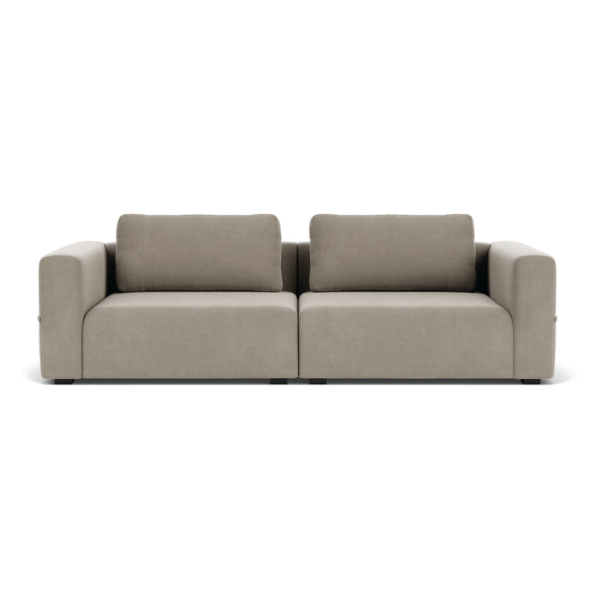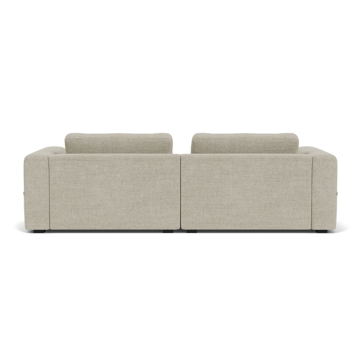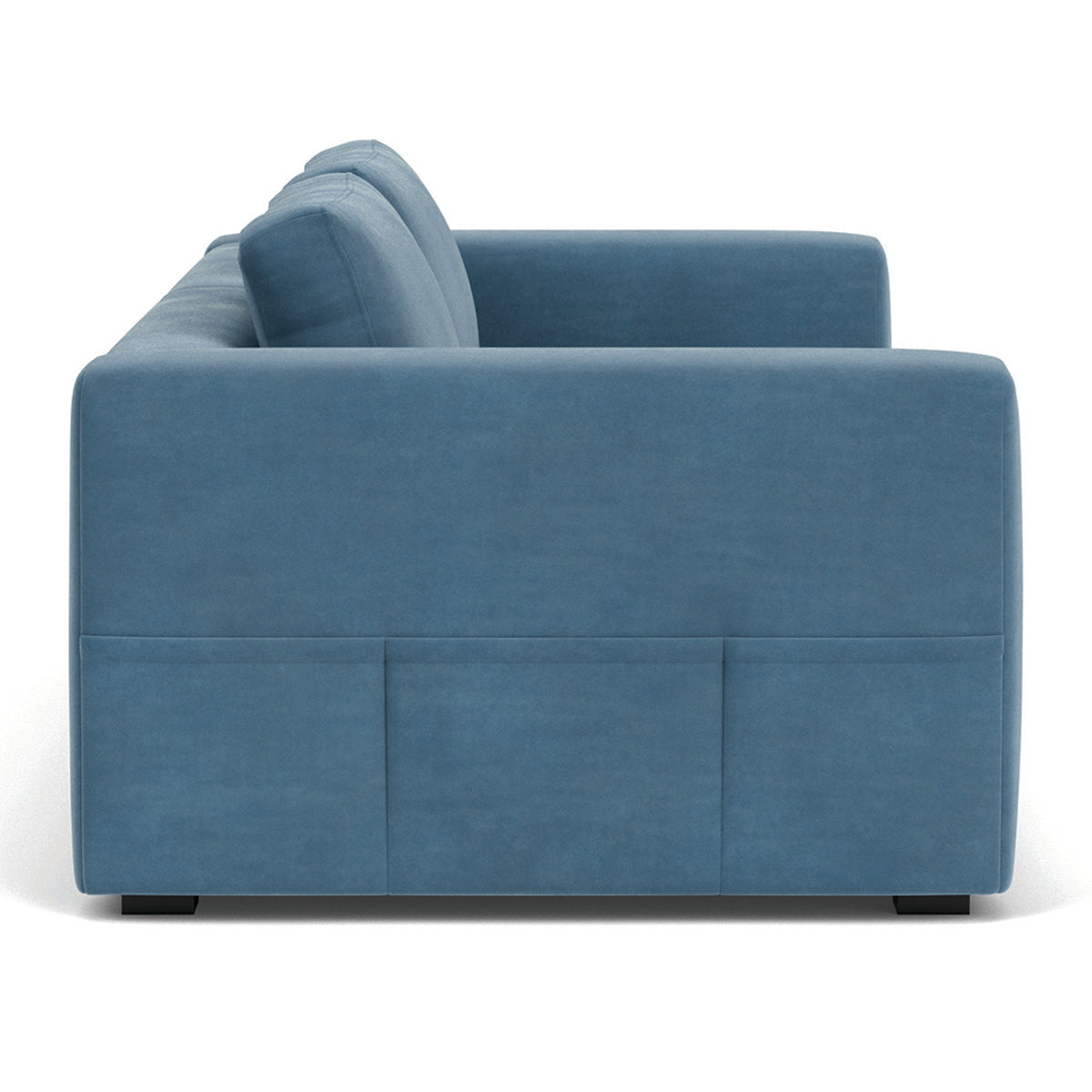 Designed for both style and function, the Riley Sofa makes a modern statement with its deep seat, boxy silhouette, and oversized cushions. Upholstered in a soft fabric, it balances clean lines with plush comfort. Functional side pockets add a practical touch, ideal for storing magazines or remotes while subtly enhancing its structured form. Rileys relaxed proportions and sink-in comfort make it an easy choice for everyday lounging.