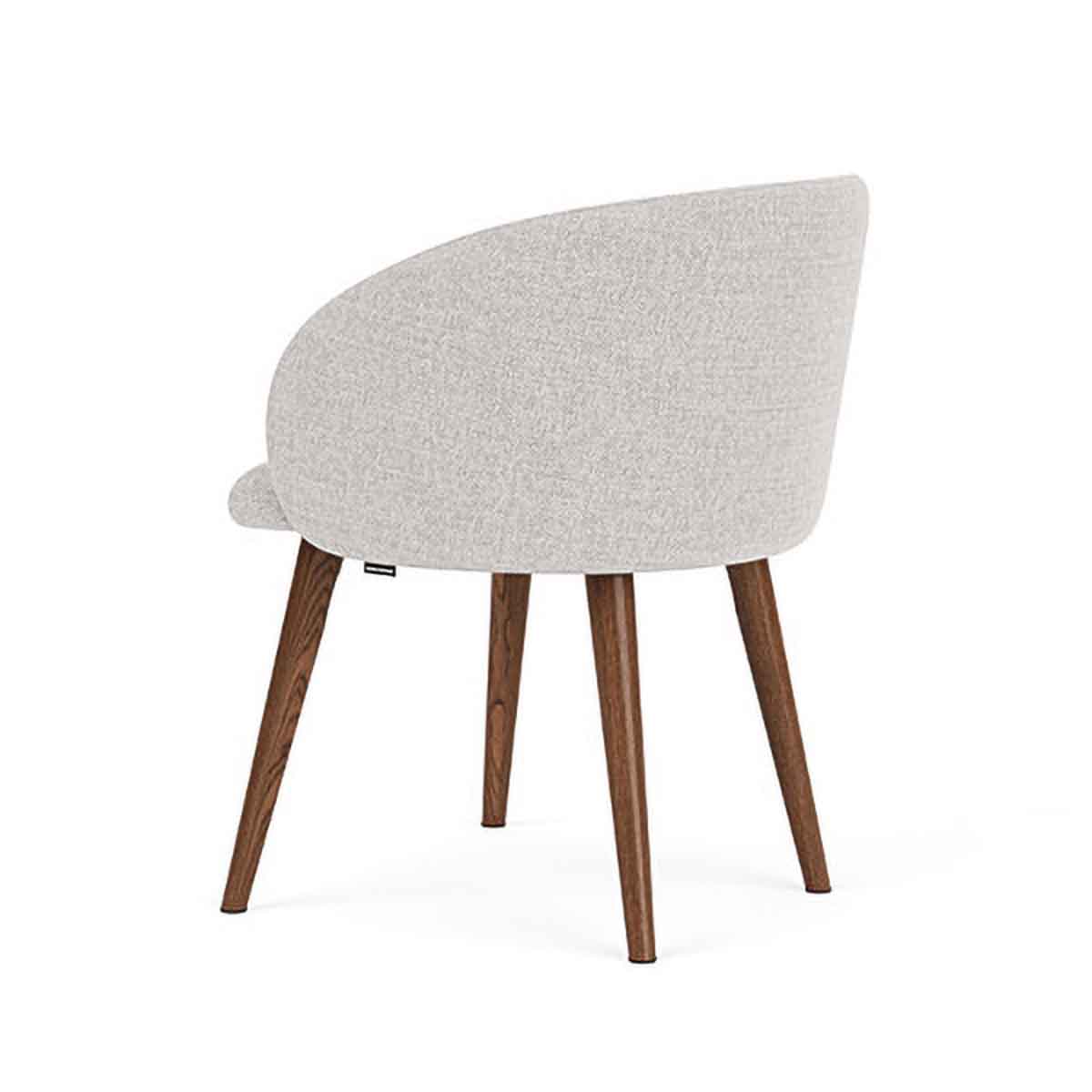 The Rosa Fabric Dining Chair showcases a minimalist sculptural design, where the back and armrests merge and beautifully embrace the seat. Upholstered in a stunning soft fabric, the curved backrest offers supreme comfort as it embraces you whilst seated, making it perfect for long dinners in the dining room or work meetings in your home office. The legs feature a simple structure and are available with two timeless finishes to choose from, either walnut timber or oak wood.