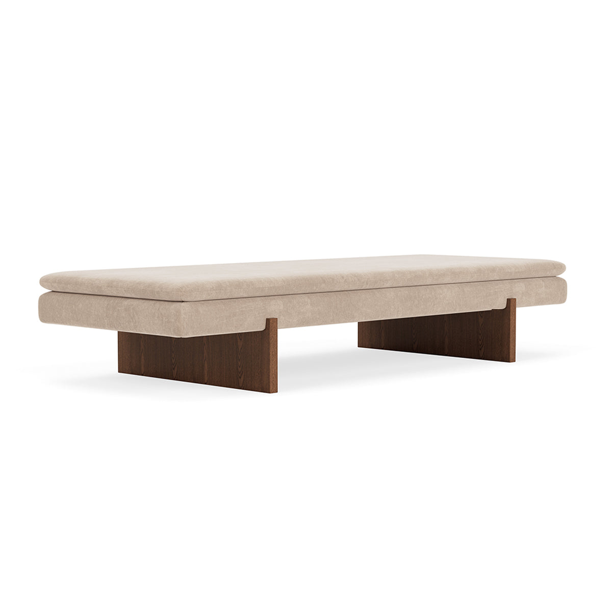 The Umi Walnut Daybed is a versatile piece with a minimalistic design. It features a wooden frame with an upholstered seat, ideal to place in any living space for an afternoon nap. The beautiful form of the bench is inspired by the Japandi trend, a fusion of the classic and simple lines found in Japanese and Scandinavian designs.