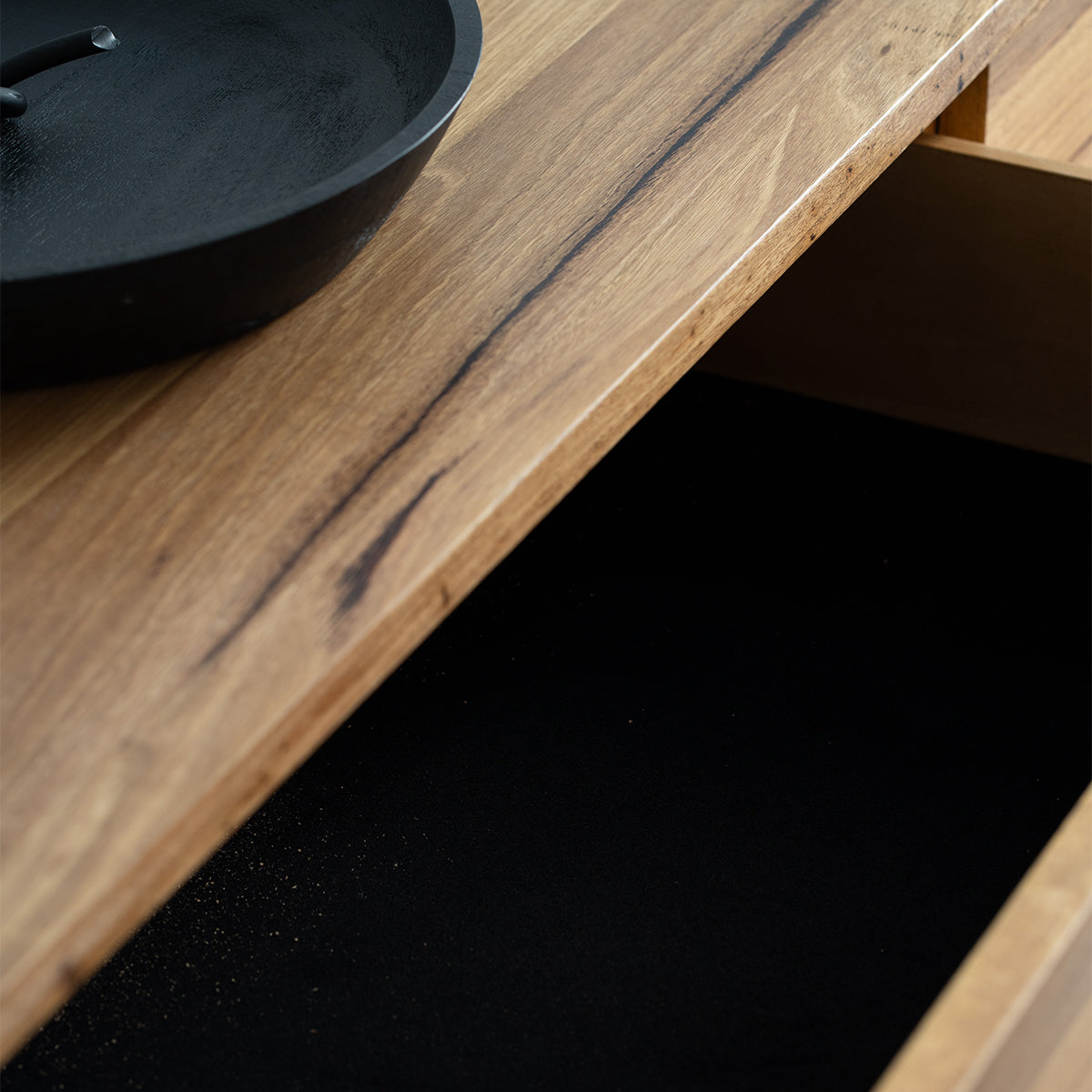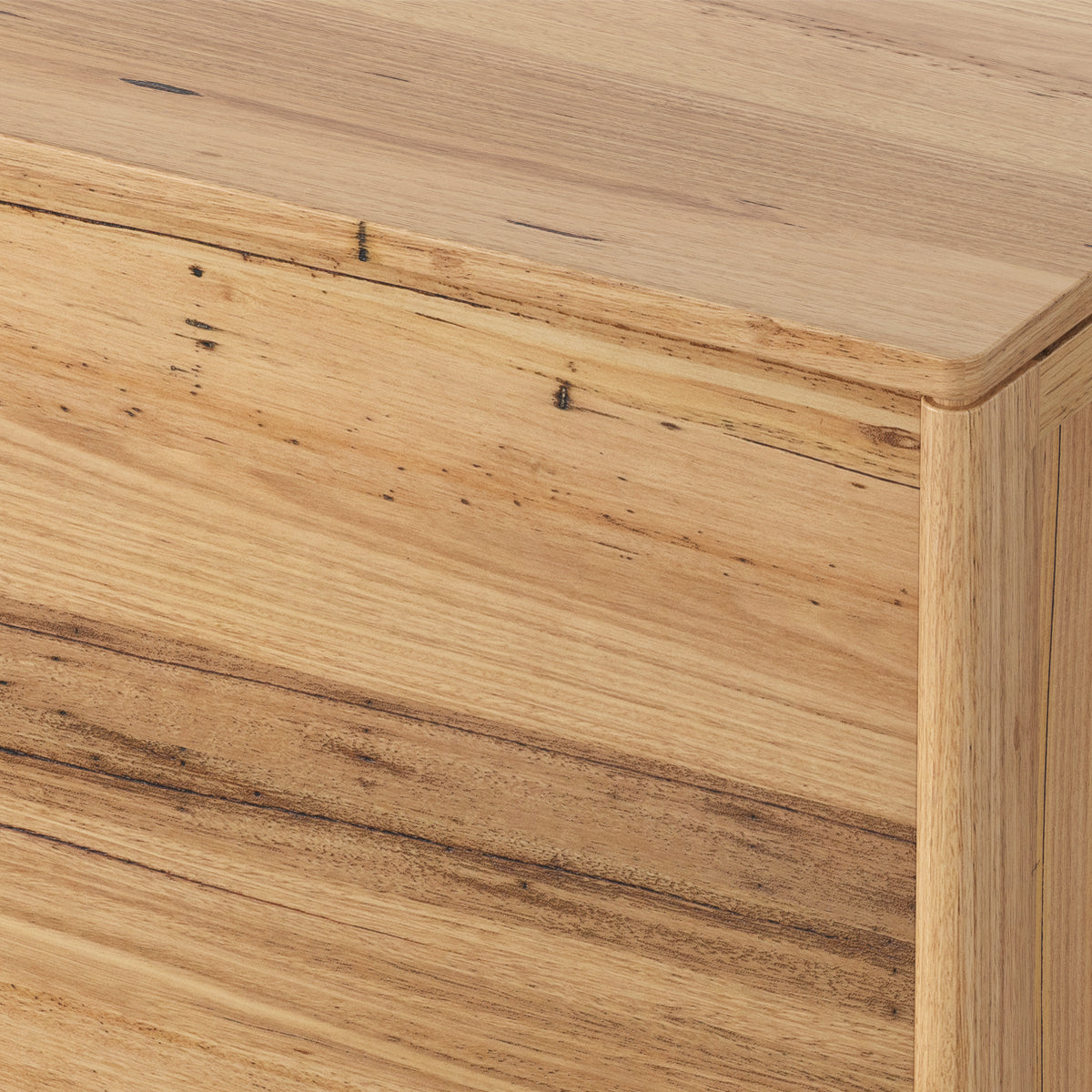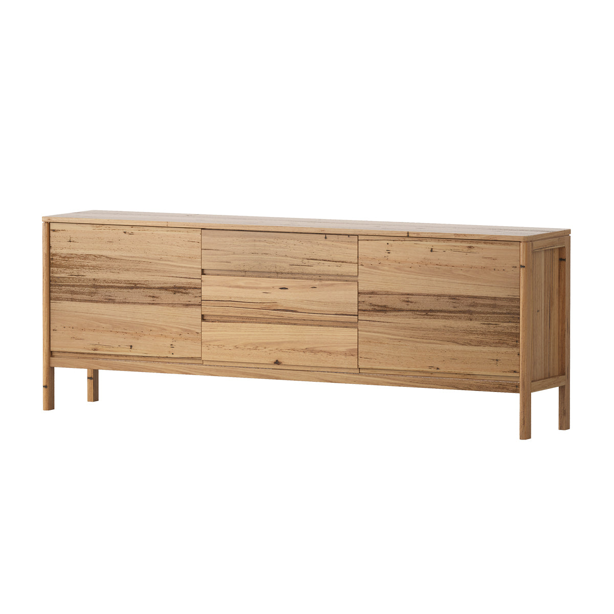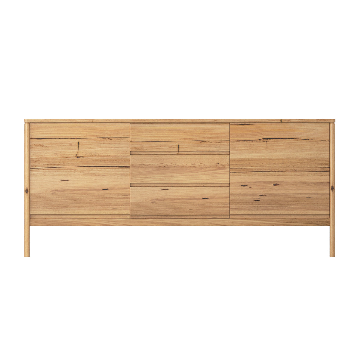 The Emilia Buffet is part of the broader Emilia dining range, a contemporary and elegant homage to craftmanship and fine detailing. The solid messmate timber and soft edges celebrate the natural beauty of the material. It features two soft close doors and three felt lined drawers to neatly house all your serving ware and dining essentials. This buffet will effortlessly elevate any dining space and introduce an element of functionality with its storage possibilities.