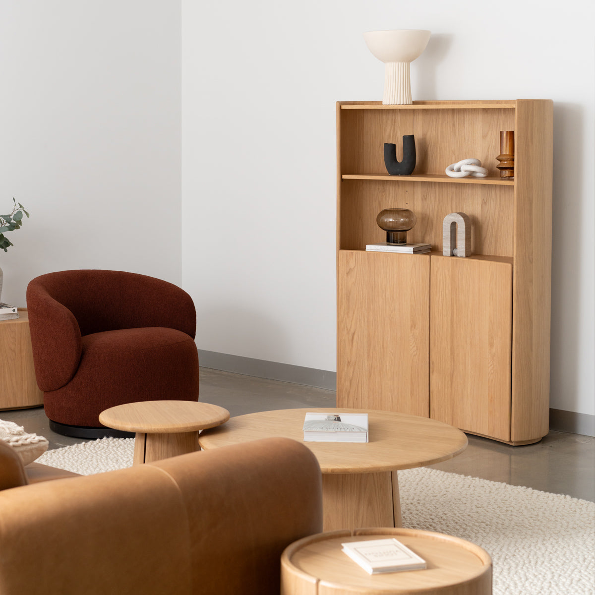 The Malakai Lamp Table is part of the broader Malakai collection, defined by timeless timber designs and rounded details. Crafted from premium American oak veneer, its contemporary rounded design seamlessly blends form and function. An internal compartment is cleverly concealed by an otherwise hidden door to offer the convenience of storage without interrupting its minimalist aesthetic. Perfect for any living space, the Malakai Lamp Table combines timeless elegance with functionality, making it a versatile addition to any home.