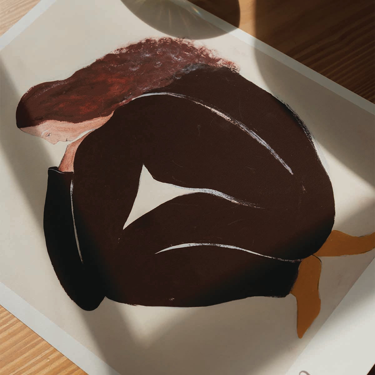 From The Zodiac Collection by bestselling artist Sofia Lind, this work interprets the zodiac as living portraits rather than symbolic archetypes. In Leo, energy is drawn inward rather than outward, the body curled in concentration. The mane like hair hints at the lion being composed, watchful and strong. Made in exclusive collaboration with The Poster Club.
