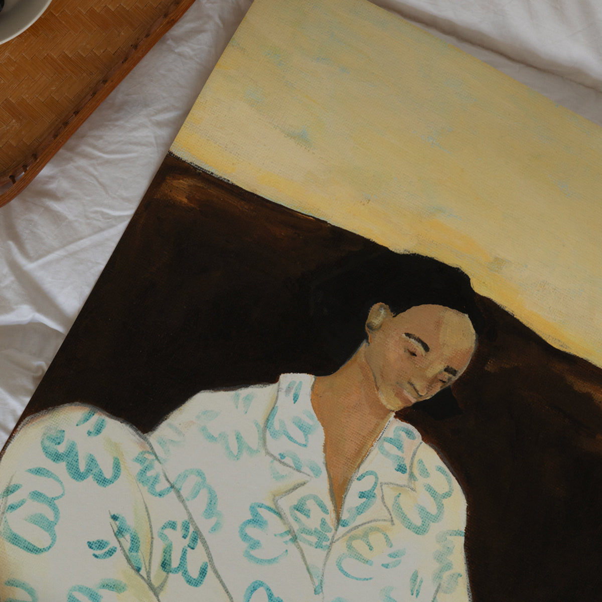 The Making Time Print by artist Swedish artist Hanna Peterson, whose work combines elements of simplicity and flow to create timeless pieces. This print details interesting patterns and organic lines to depict a person relaxing. Rich browns and neutral hues complement each other beautifully, and create a stunning contemporary piece that will add an artistic touch to any room.