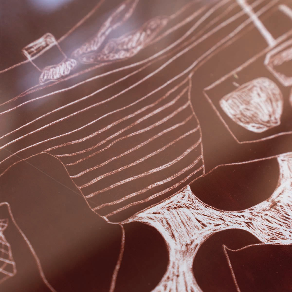 Art print by Lucia Tuffley. A graphic, monotone print featuring your favourite farmers market treats.