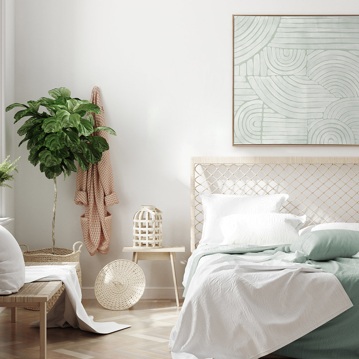 Mazy Thoughts III Canvas Art Print - This simple, yet bold piece uses a monochromatic pistachio green palette, with a blend of arched and straight lines. A very painterly feel that compliments various interior design styles. It's abstract with an organic sense of movement - a piece that makes a subtle statement by bringing life to any room.