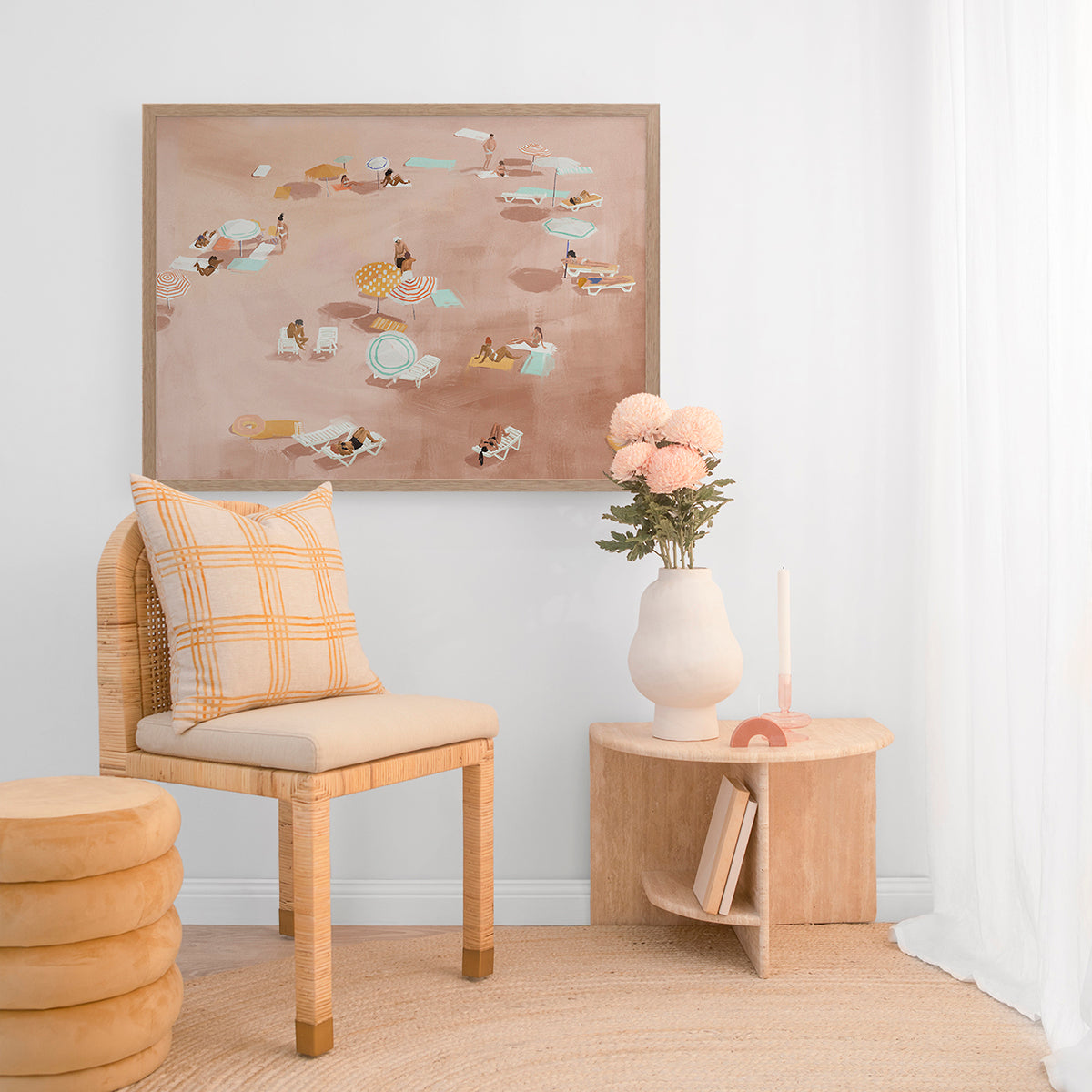 A reminder of summer days, relaxing with loved ones under the heat of the sun, not a plan in mind, this Under The Sun Art Print is a unique way to bring coastal vibes into your space. Palette includes warm brown tones with pops of turquoise blue, orange, and white, or cool brown tones with pops of turquoise blue, orange, and white. Urban Roads range of artworks are perfect to uplift your home, fill that empty wall, or add an extra layer of texture and comfort.